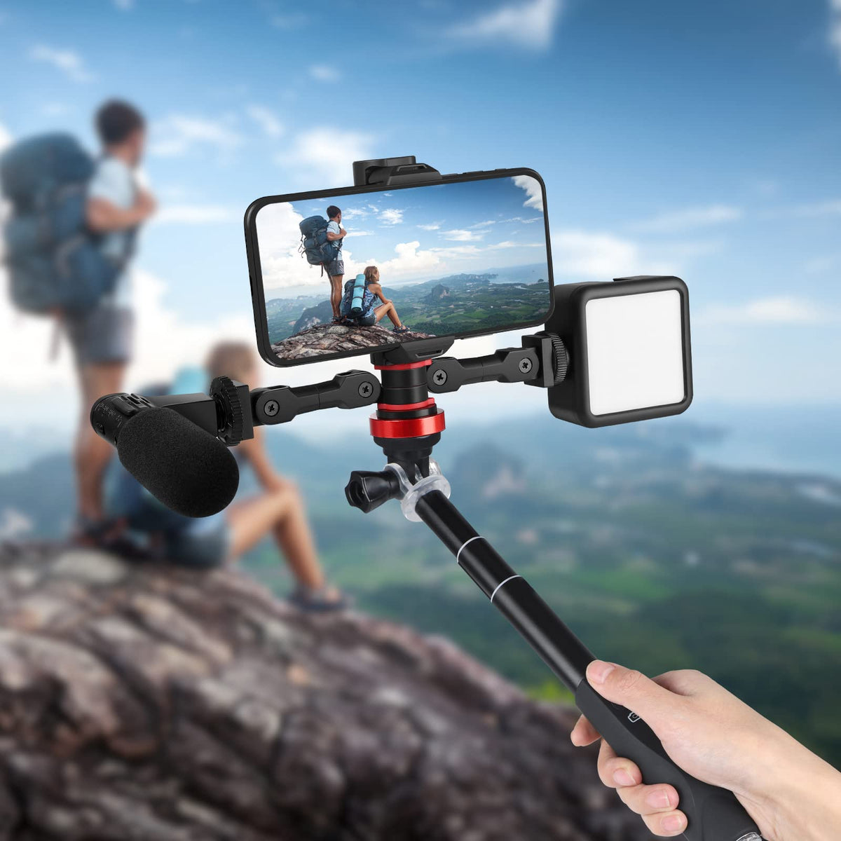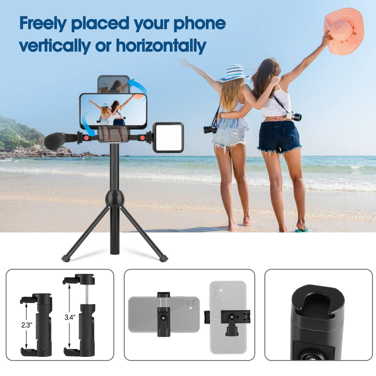 Chromlives Cold Shoe Mount Adapter With Phone Clip,Rotatable Dual Cold Shoe Extension Bracket Hot Shoe Mount Adapter For Led Lig