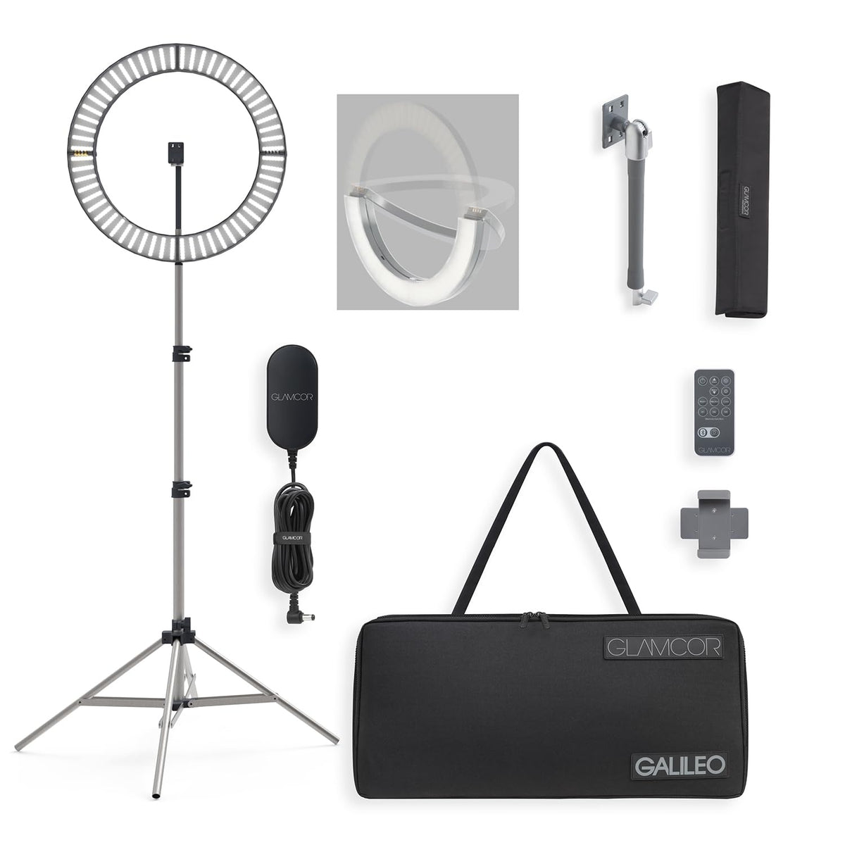 A Cosmic Shift In Lighting Technology Is Coming To Glamcor With...The Galileo. Bring Celestial Shine And Immaculate Precision To Your Content Creation. The Galileo Is An 18-Inch Folding Ring Light That Will Bring New Dimensions And Depth To Your Content Creation. Opt For A Cool Celestial Shine, A Warm Sunlit Glow, Or A Neutral Middle Ground Between The Two, The Galileo Is Entirely Customizable In Brightness And Temperature. Quickly Attach Your Phone Or Other Devices To The Heart Of The Light. The Ring Evenly Illuminates Your Face, Object, Or Scene For The Device To Capture. No Need For An Additional Tripod. The Bluetooth Functionality Operates At Lightspeed To Connect To Your Devices. When Youre On The Move, This Innovative Piece Of Kit Will Fold Down Quickly Into The Custom-Designed Travel Case. Even The Ring Itself Folds Down To A Half-Moon. Everything Is Lightweight, Portable, And Engineered To Perfection.