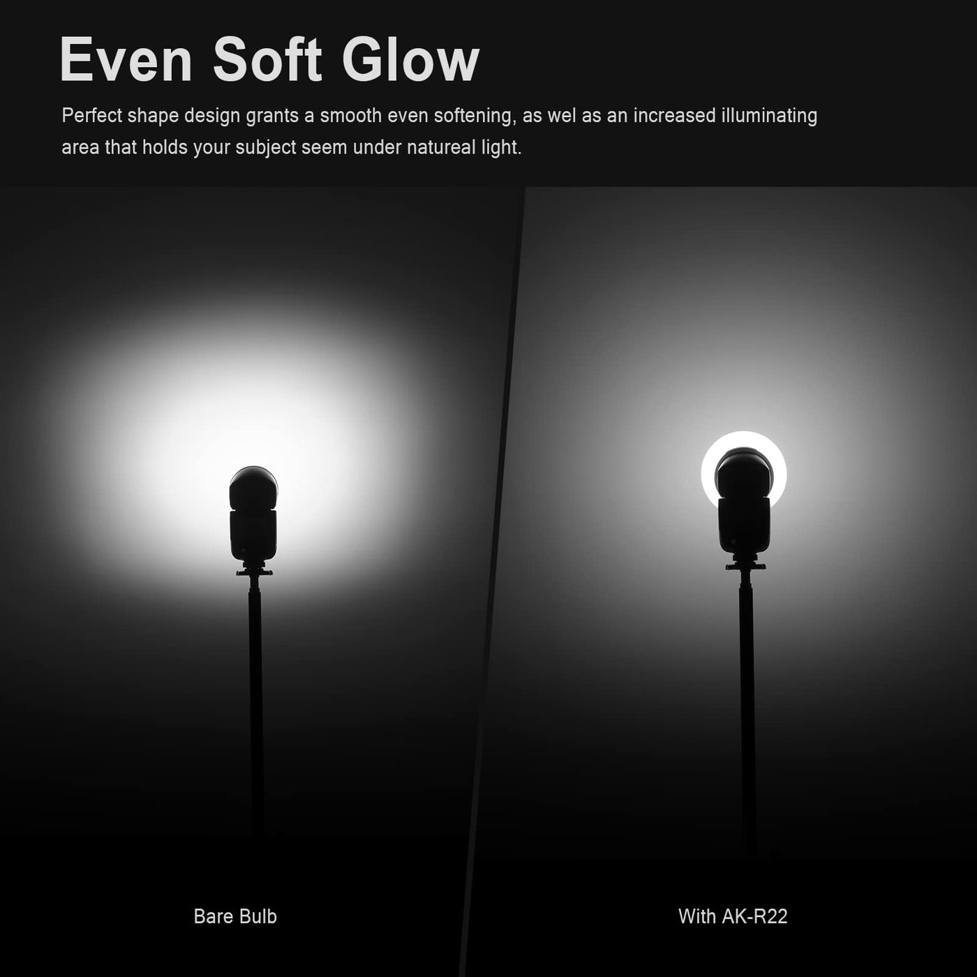Q: How does the Godox AK-R22 Diffusion Dome enhance lighting quality?A: The AK-R22 Diffusion Dome is designed to provide an even soft glow, eliminating harsh shadows and creating a natural look for your subjects. Its unique dome shape allows for increased illuminating area, which helps maintain a soft and diffused light quality across your images.