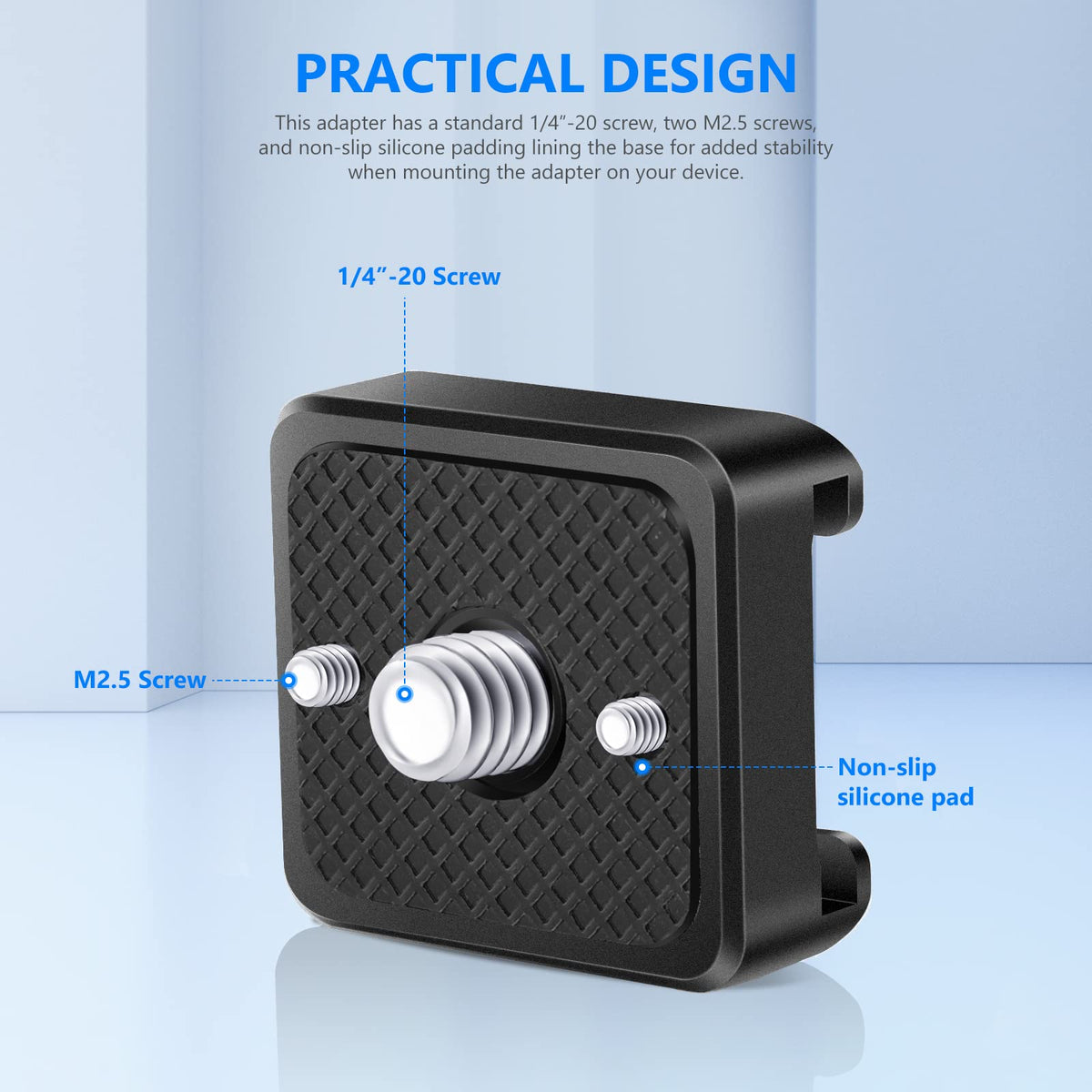 Camera Cold Shoe Mounts Features One 1/4''-20 Screw Hole, Two M2.5 Screw Holes, And Bottom Non-Slip Rubber Padding For Secure Mounting On Your Compatible Device. The Cold Shoe Bracket Is Designed With High-Quality Aluminum Alloy And A Beautiful Anodized Black Finish, Anti-Rust, High Strength, Durable. With Cnc Machining And Black Anodizing Surface Treatment Ensures Higher Durability. The Inner Curved Groove Makes Sure Your Mounted Accessory Securely Stays In Place And From Accidentally Sliding Forward, Keeping Your Accessories Slide Perfectly In Right Place. The Cold Shoe Mount Allows You To Attach More Lights, Microphones, Or Other Accessories To Adapt To Any Shooting Scenario. Specificationsmaterials: Aluminum Alloy, Stainless Steel, Silicone Dimensions: 1.02'' 0.94'' 0.39'' / 2.6 2.4 1Cm Weight: 1.41Oz / 40G Package Contents4 Cold Shoe Adapter 4 1/4''-20 Screw 8 M2.5 Screw 2 Hex Key For 1/4''-20 Screw 2 Hex Key For M2.5 Screw