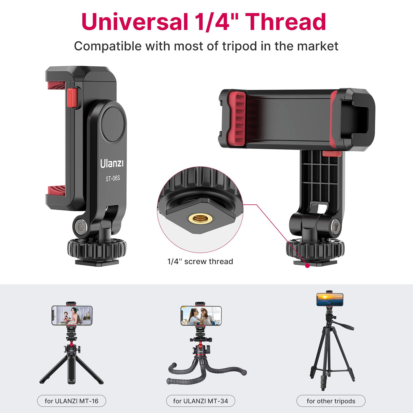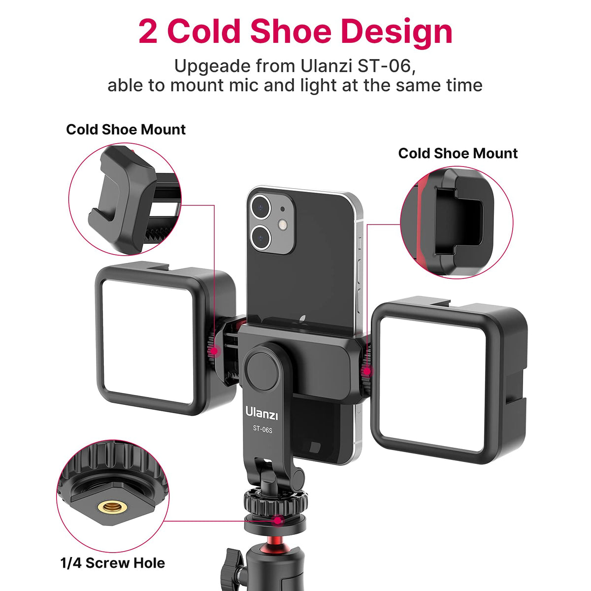 Phone Tripod Mount Holder For Iphone - Ulanzi St-06S Camera Hot 2 Cold Shoe Phone Mount Compatible For Iphone Android Sony Canon