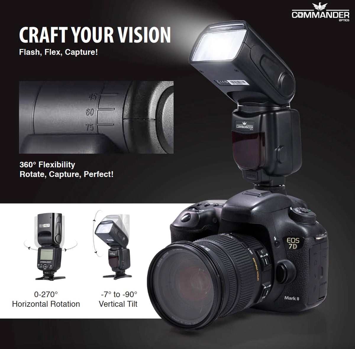 Ttl Speedlite Flash This Commander Optics Flash Bundle Includes:Ttl Speed Light Flashhard Diffusermini Standsoft Flash Pouchaa Battery Charger4X Aa Batteriescompatible With All Canon Eos Dslr Camera Including Rebel T3, T4, T6, T7, T1I, T2I, T3I, T4I, T5I, T6I, T7I Eos 70D, 77D, 80D, 5D Mark Ii, 5D Markk Iii, 5D Mark Iv, 6D, 6D Mark Ii, 7D Mark Ii, 1D, 1Dx And More..Guide No 58(105Mm,Iso 100) Flash Range 18-180Mm; Manual Zoom; Auto Zoom, Flash Head Roate :Level 0-270Degree,-7--90Degre(Up And Down);Reflect Flash E-Ttl,Manual, I-Ttl,Manual Control Light By 8 Steps (1/1,1/2,1/4,1/8,1/16,1/32,1/64,1/32,1/128) Manual Flash Exposure Bracketing :As 1/3Steps To Adjusting Between +-3 Steps High Speed Sync (1/8000S),Front Curtain ,Second Curtain Wireless Function Master Unit,Slave Unit,Off Slave Unit Group Optical :3 Groups :A,B,C; Transmission Range Range(Appox) Optical: Indoor 12-15M ,Outdoor 8-10M(Approx) Channel Optical: 4 Groups :1,2,3,4 2.4G: 16 Groups,1-16 Auto Focus Auxiliary Light Effective Range Center: 0.6-10M/ Edge: 0.6-5M(Appox) Sync Trigger Hot Shoe, 3.5Mm Sync Cord ,Wireless Optical Control S1,S2 Wireless Hote Shoe Receiver
