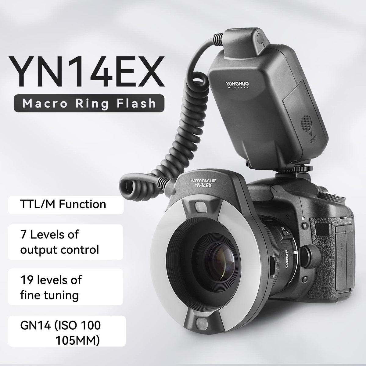 Yongnuo Yn-14Ex Yn14Ex Ttl Macro Ring Flash, Led Flash Light With Adapter Ring For Canon Eos Dslr Cameras, As Canon Mr-14Ex