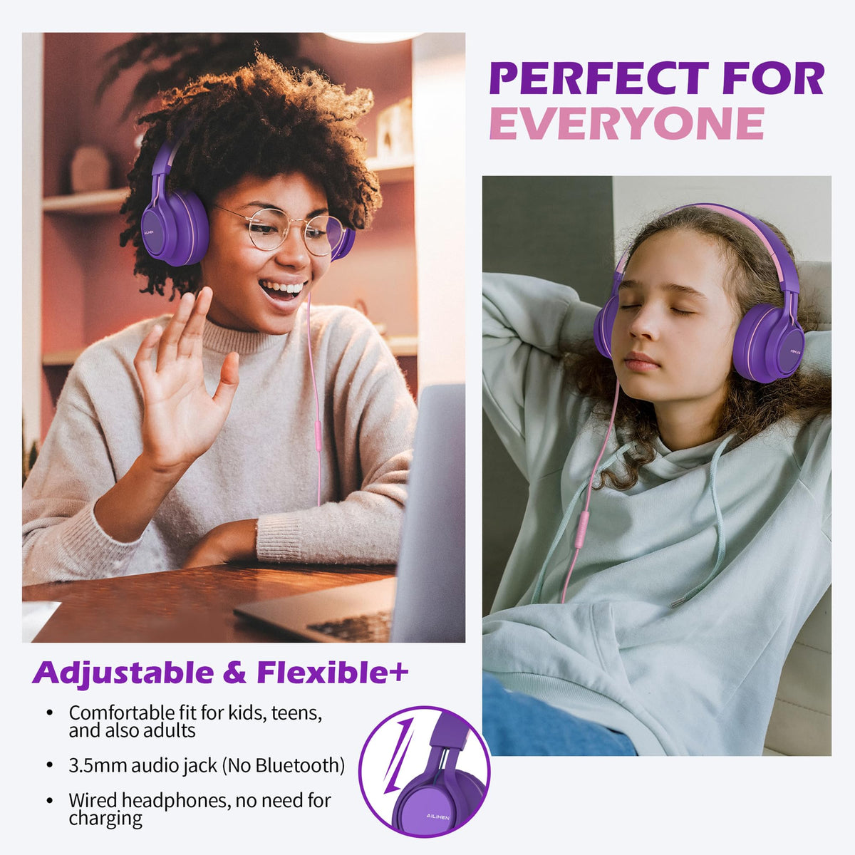 Ailihen C8 Girls Headphones, On Ear Headphones Wired With Microphone And Volume Control Foldable Corded Stereo 3.5Mm Headset For