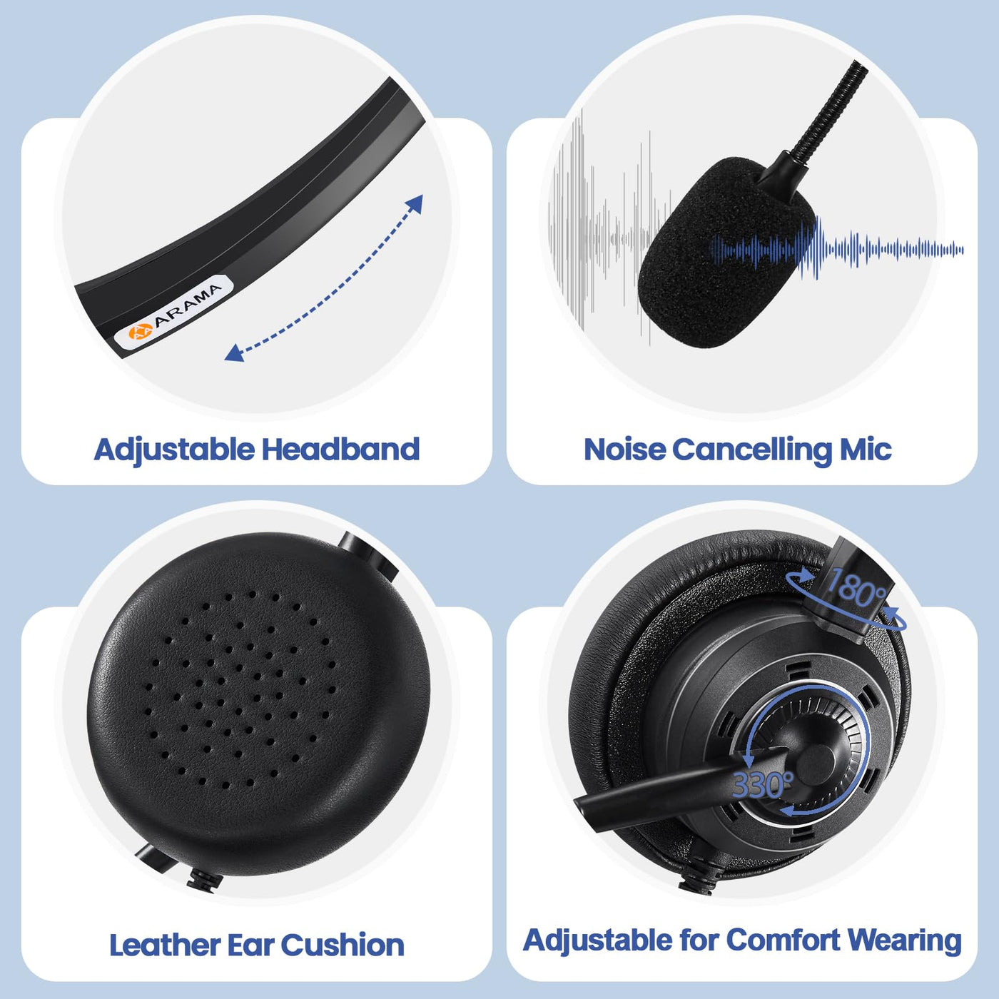 Arama Usb Headset With Microphone Noise Cancelling, Comfort Fit Computer Headset With Microphone For Pc Laptop Mac Skype Zoom Uc Webinar Business Call Center Home Office