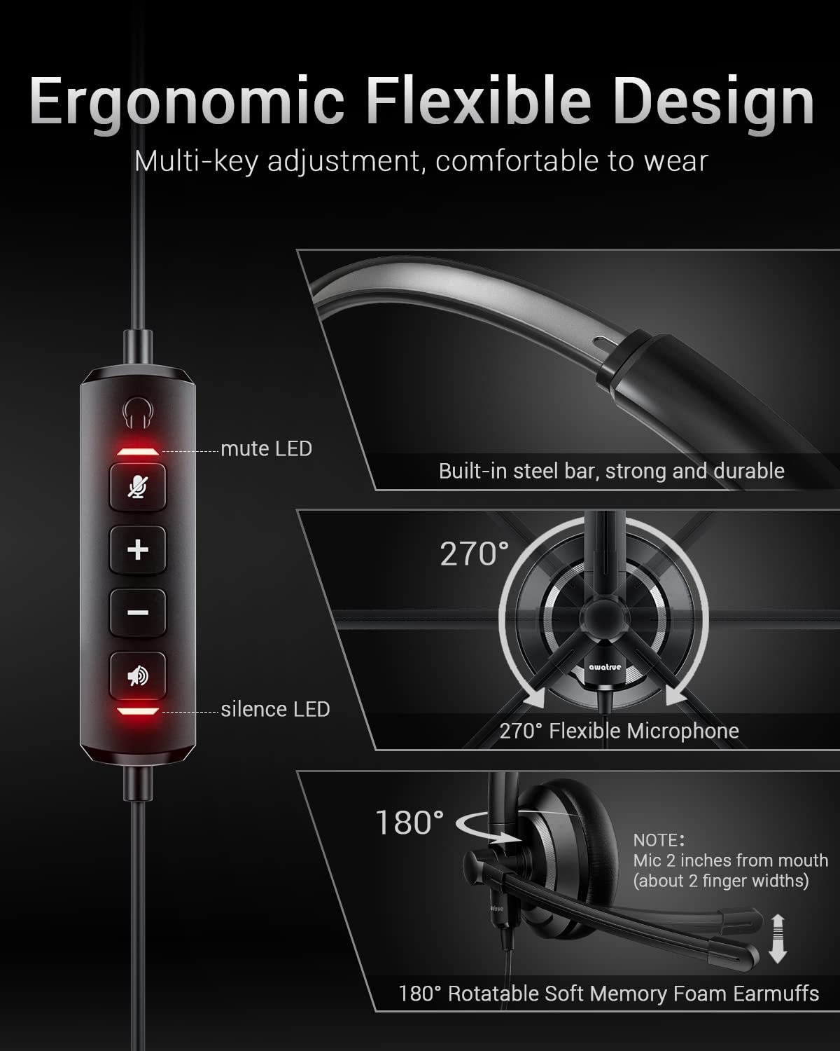 Awatrue Eh05 U Wired Usb Headset With Noise Cancelling Microphone For Pc Laptop Headphones With In Line Control, Lightweight,
