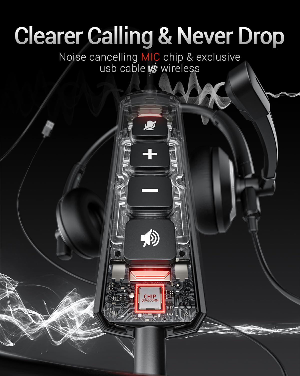 Usb Headset With Microphone For Pc Laptop - Headphones With Ai Chip Noise Cancelling Microphone For Computer,On-Ear Wired Office Call Center Headset For Boom Skype Webinars,In-Line Control,Lightweight. Using The Enc Noise Reduction Chip Can Eliminate Up To 98% Of The Surrounding Noise, And Wired Noise Cancelling Is Never Drop And More Stable Than Wireless Headset Usb Headset With Microphone Is Not Only Light But Also Ergonomically Designed,So Comfortable .