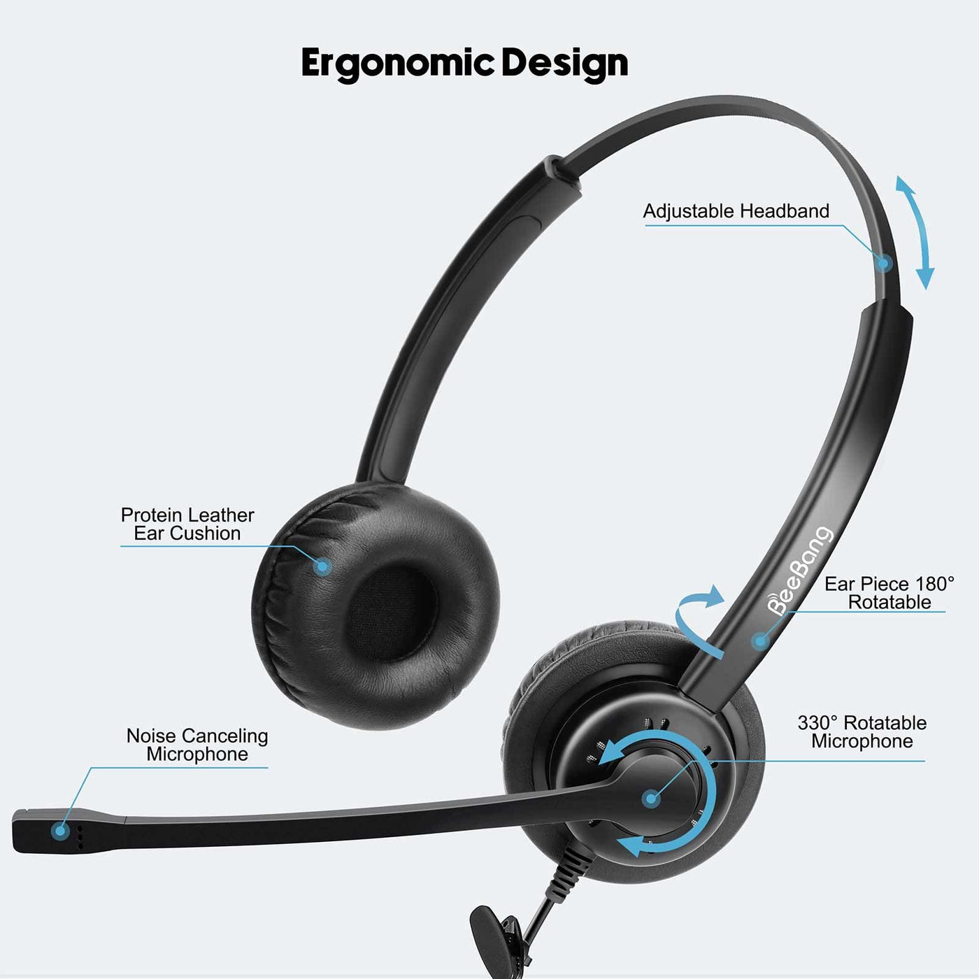 Microphone Mute &Amp; Volume Controller Beebang Phone Headsets With Noise Cancelling Microphone Are Built With In-Line Control Of Mic Mute And Volume Adjustment. So You Can Easily Mute And Un-Mute Your Voice During Calls.&Nbsp; Hd Audio Sound: Office Headset With Wideband Speaker Delivers Crystal Clear Sound For Easy Communication. With Unidirectional Noise Canceling Microphone, The Telephone Headset Can Block Out Unwanted Background Noises For The Other End Callers To Hear Clearly, Perfect For Use In Noisy Environment. Super Comfortable: Light Weight Design Call Center Headset With Adjustable Headband Fits For Different Head Sizes. Soft Protein Leatherette Ear Cushion, Skin-Friendly, Durable And Very Easy To Clean, With 180Rotatable Earpieces Ensures The Customer Service Headset To Bring All-Day Long Comfort Wearing. Great Durable: The Hands-Free Wired Rj9 Headset With Tough Design, Strong Headband, Quality Plastics, Superior Microphone And Speaker Allows For 24/7 Heavy Use In Offices, Call Centers And Homes. Reinforced Cord Of The Communication Headset Is Built With Kevlar To Withstand Office Chair Wheels, Sharp Objects, Can Rival With Jabra Headset For Heavy Use. Warranty: We Offer 30Days Money Back Guarantee And Two Years Warranty For The Corded Telephone Headset With Mic, Professionally Designed For Call Center, Telemarketing, Office, Business, Phone Sales, It Department, Customer Services, Consulting And More.