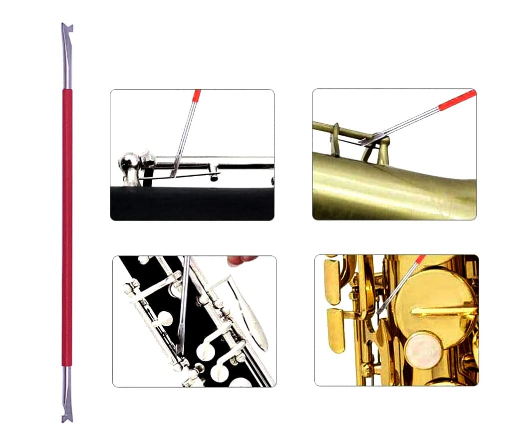 Jiayouy Woodwind Instrument Repair Tool Kit Stainless Steel Key Cover Adjusting Dual Head Spring Hook Key Buttons Protector For