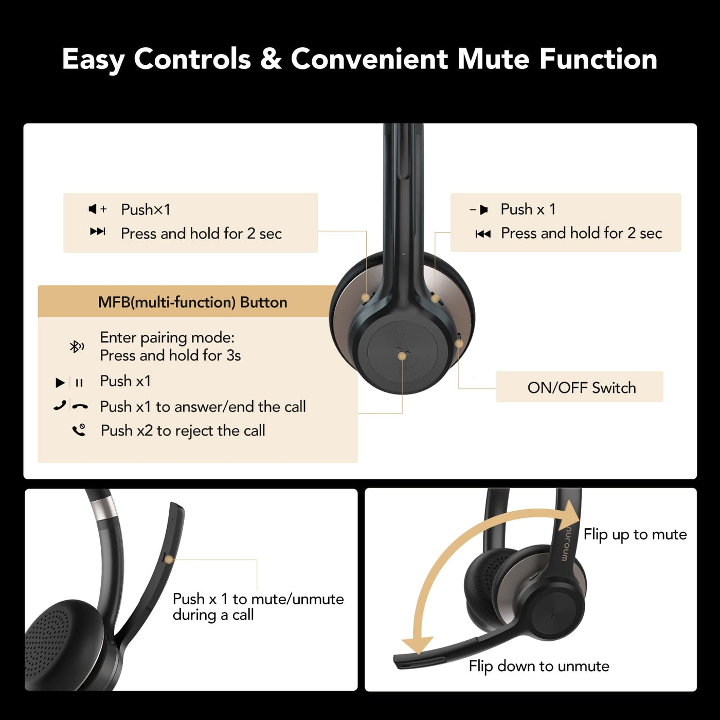 Nuroum Bluetooth Headset With Mic, Environmental Noise Canceling Microphones,On Ear Wireless Headset For Pc/Computer/Mobile, Don