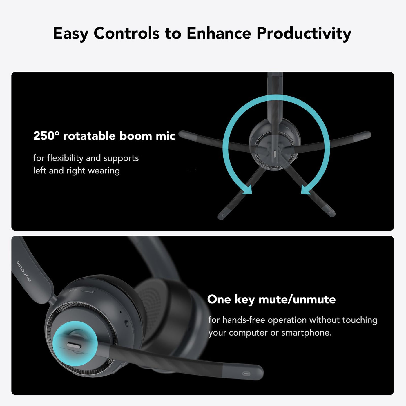 Nuroum Wireless Headset With Mic For Work, Bluetooth Headset With Noise Cancelling Microphone, Mute Button, Usb For Pc/Computer/