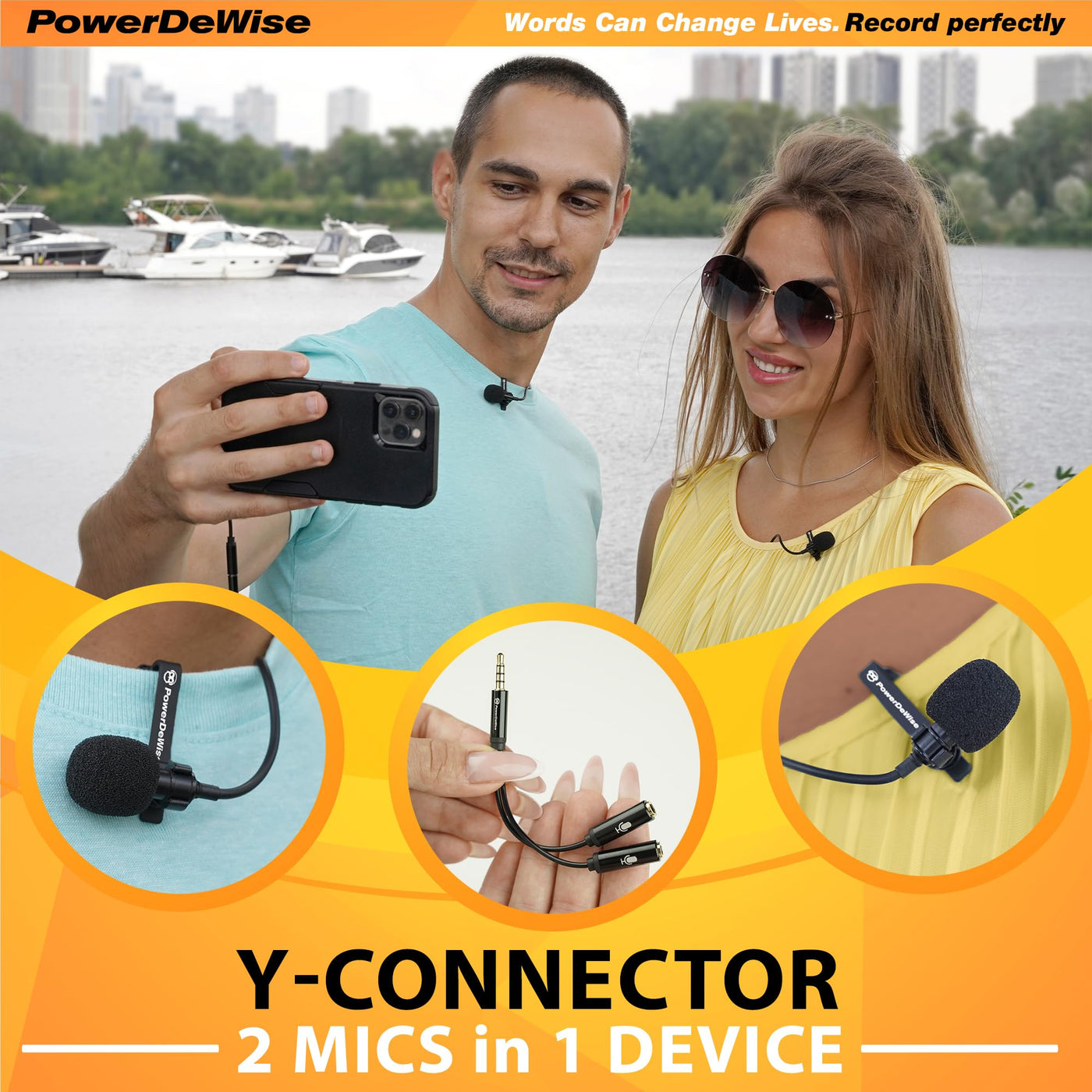 Powerdewise Professional Grade 2 Lavalier Clip On Microphones Set For Dual Interview Double Lav Lapel Microphone Use For Iph