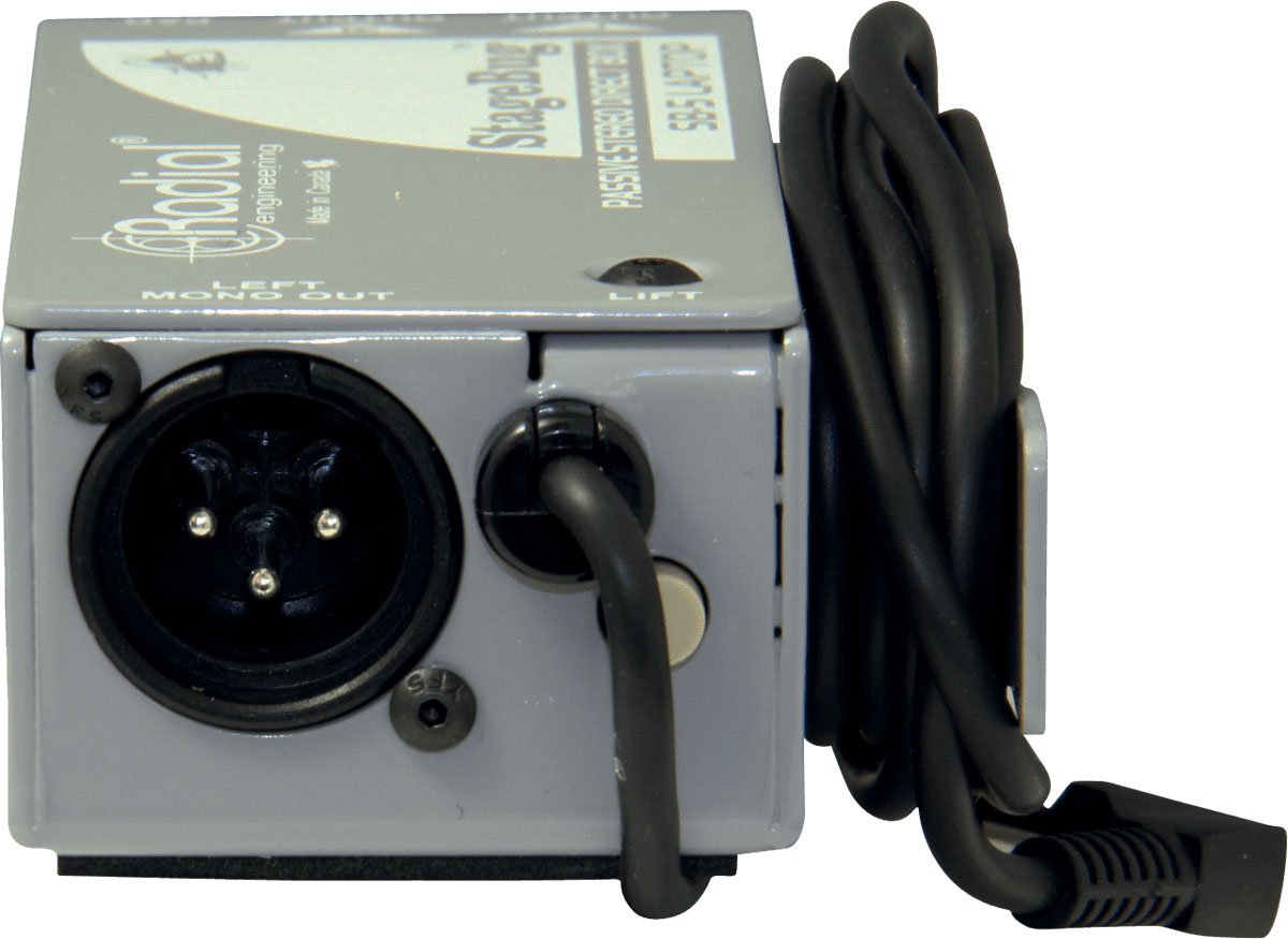 Need To Pump The Audio Output Of Your Laptop Through The Pa, Cleanly? Gearnuts Has The Device You Need: The Radial Stagebug Sb-5. The Stagebug Sb-5 Is A Passive Di That Takes An Unbalanced Stereo Signal And Sends It Through A Pair Of Custom-Wound Transformers, Which Balances The Signal For Cable Runs Of Up To 300 Feet. The Transformers Also Isolate The Source Device - Your Computer, For Instance - From The Pa System, To Eliminate Buzz And Hum Due To Ground Loops. The Unit Is Also Fitted With A Ground-Lift Switch. Flexible I/O To Handle Any Scenario Input Is Via A Permanently Attached 5-Foot, 1/8'' Stereo Trs Cable. For Output Connections, You Have A Choice Of Two 1/4'' Trs Jacks For Stereo Operation Or An Xlr That Automatically Sums To Mono. A 15Db Pad Lets You Knock Down Hot Input Signals. Whether You'Re An Av Technician Or Touring Musician