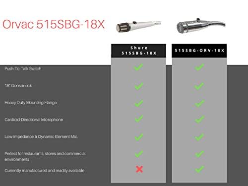 Equivalent Replacement To The Shure 515Sbg-18X, The Rbx-515Sbg-18X Is A Dynamic Low Impedance Cardioid Gooseneck Microphone With A Momentary Push Button Switch. First Choice For Microphone For Fast Food Restaurants. Excellent Voice Range For Paging Announcements In Hotels, Restaurants, Transportation And Dispatch, Grocery Stores Or For Studio Talkback. The Kit Includes A 20'' Chrome Gooseneck, Mounting Flange And An Attached 5 1/2 (1.7M) Long Cord.