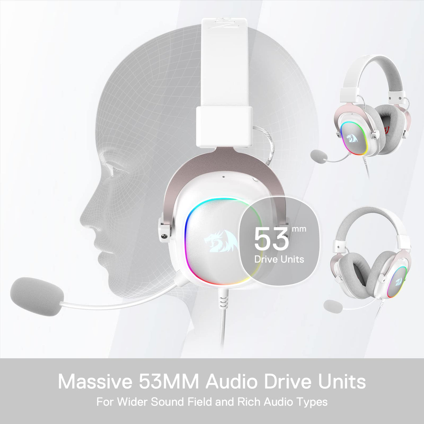 Redragon H510 Zeus X Rgb White Wired Gaming Headset 7.1 Surround Sound 53Mm Audio Drivers In Memory Foam Ear Pads W/Durable