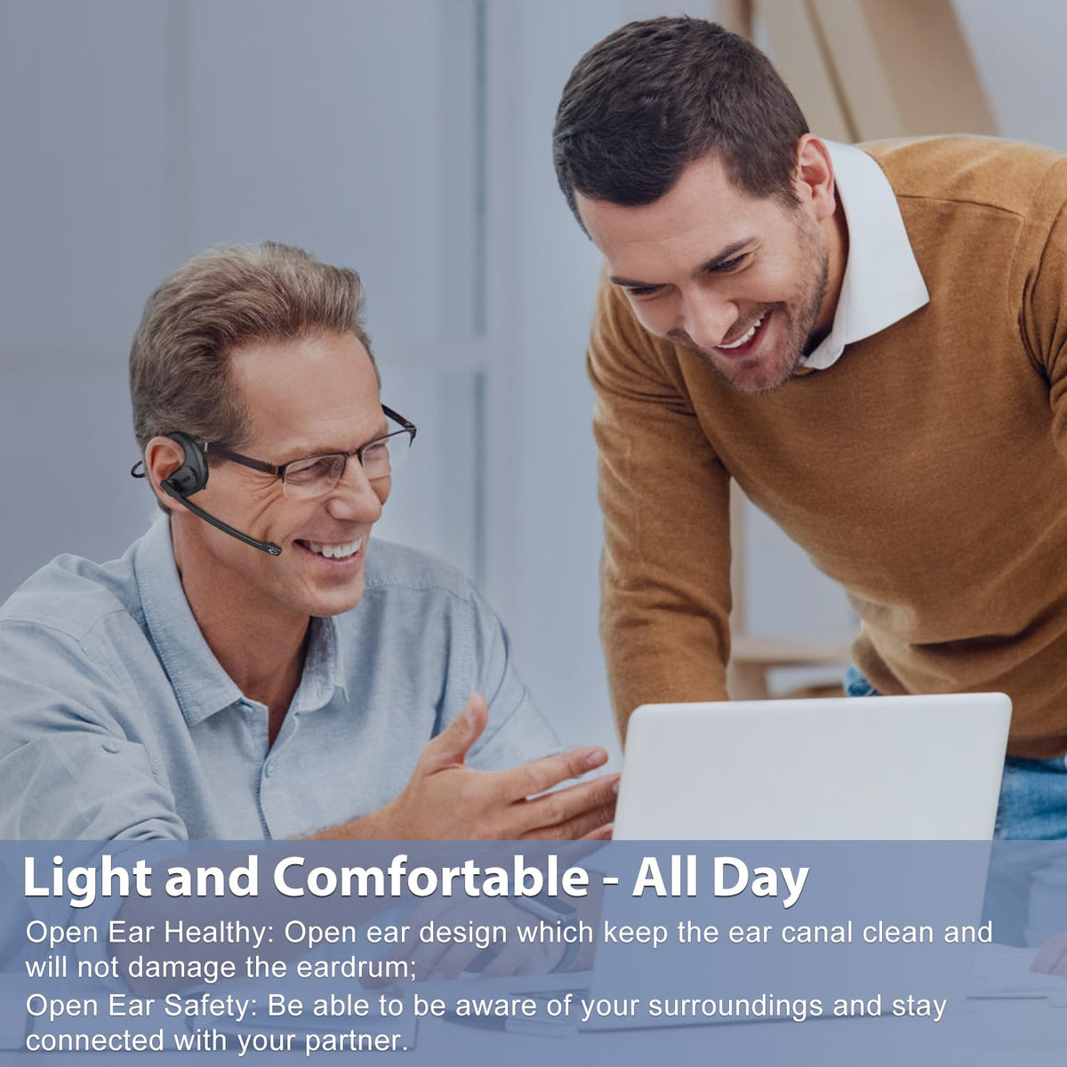 Seflorgo Trucker Bluetooth Headset, Open Ear Headphones With Detachable Noise Cancelling Mic, Wireless V5.3 Computer Headset Wit