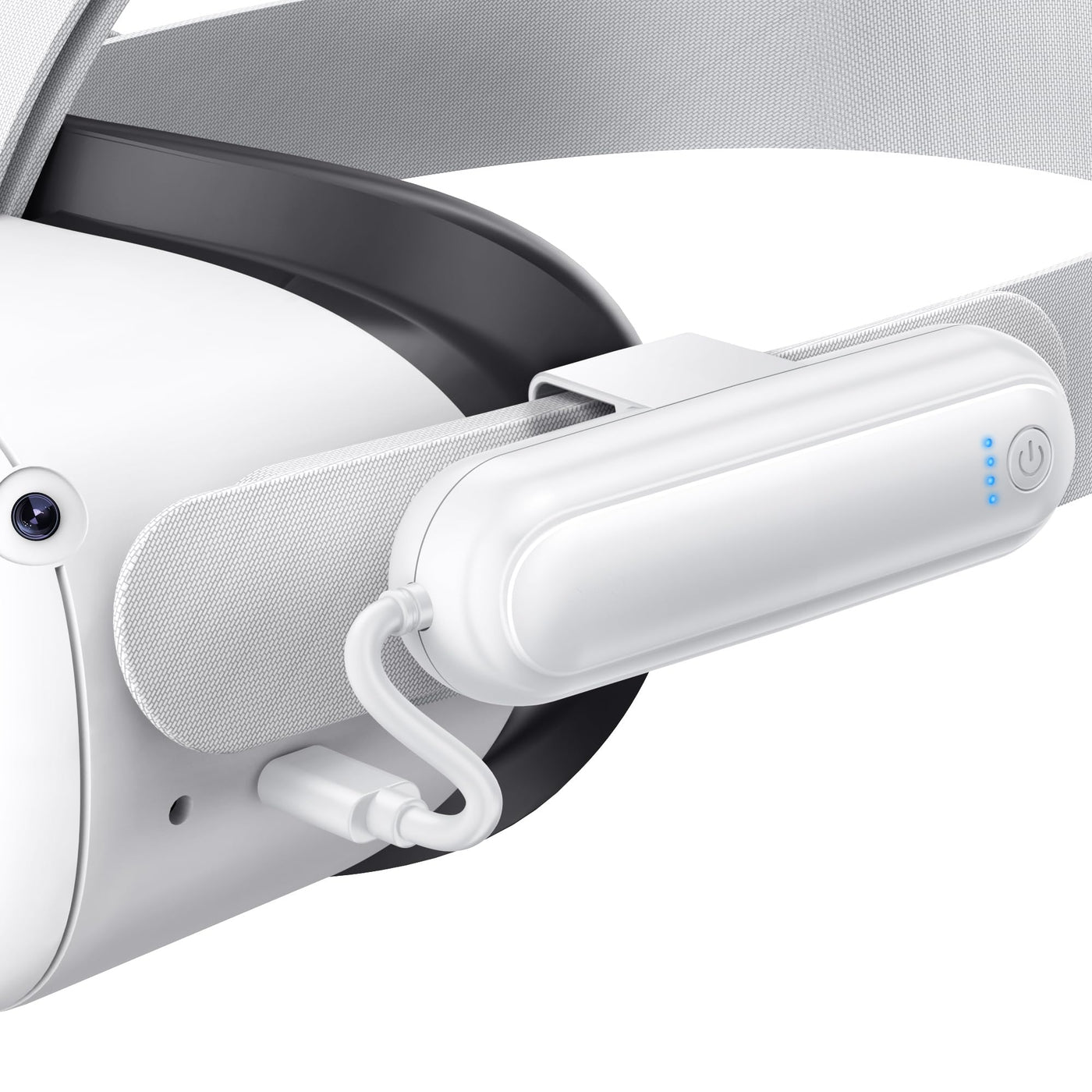 Kinwin Newset 20000mWh Battery Pack for Oculus Quest 2/Meta Quest 220000mWh Battery Pack for Oculus Quest 2With a capacity of 20000mWh, for oculus quest 2 battery pack provides an extra 2-4 hours of playtime, no more worrying about the quest 2 running out of power, bringing you immersive VR gaming funCharging Quest 2 & Battery Together With the smart chip, Kinwin vr battery pack for oculus quest 2 supports charging Quest 2 and battery at the same time. It will charge the meta quest 2 headset first, and then charge the Kinwin battery pack. It is very convenient to avoid charging Quest 2 and battery separately. Perfect vr meta quest 2 accessoriesSafe and Fast ChargingUL 2056, CE, RoHS, FCC certified. Built-in low-temperature IC ice core, intelligent monitoring of voltage and current, actively avoid over-charge, over-discharge, short circuit, high temperature, creating a safe charging environment for you. With 10W input, charging for this meta quest 2 battery pack about 3hoursLightweight and PortableOnly 100g/3.5once, for vr oculus quest 2 accessories battery pack is super lightweight and portable, which is essential for VR headset to avoid adding extra weight for your headPackage Includes:1 battery pack for Oculus/Meta Quest 21 x USB Charging Cables1 x User Manual