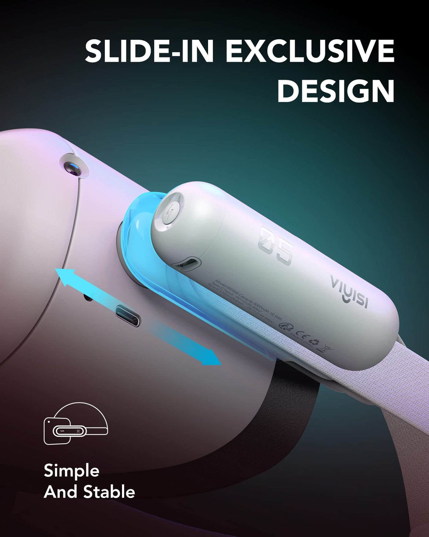 Upgrade Your Vr Gaming Experience With The Viyisi Portable Battery Pack For Oculus Quest 2. Our Exclusive Slide-In Design Makes It Easy To Use And An Indispensable Accessory For Your Oculus/Meta Quest 2. With A High Capacity Of 5000Mah, This Battery Pack Provides An Additional 2-4 Hours Of Vr Gaming Time, Giving You More Time To Explore Virtual Worlds Without Worrying About Battery Life. Plus, The Compact And Lightweight Design Makes It Comfortable To Wear During Long Gaming Sessions And Easy To Take On The Road. This Portable Charger Is Not Only Compatible With Oculus Quest 2 And Oculus Quest But Also Suitable For Other Devices With Type-C Port. You Can Even Use It To Charge Your Type-C Phone In An Emergency. The Package Includes A Usb A To Usb C Cable And User Manual, And Our Professional And Friendly Customer Service Is Always Available To Help. Plus, We Offer A 12-Month Worry-Free Warranty. Upgrade Your Vr Gaming Experience With The Viyisi Portable Battery Pack For Oculus Quest 2.