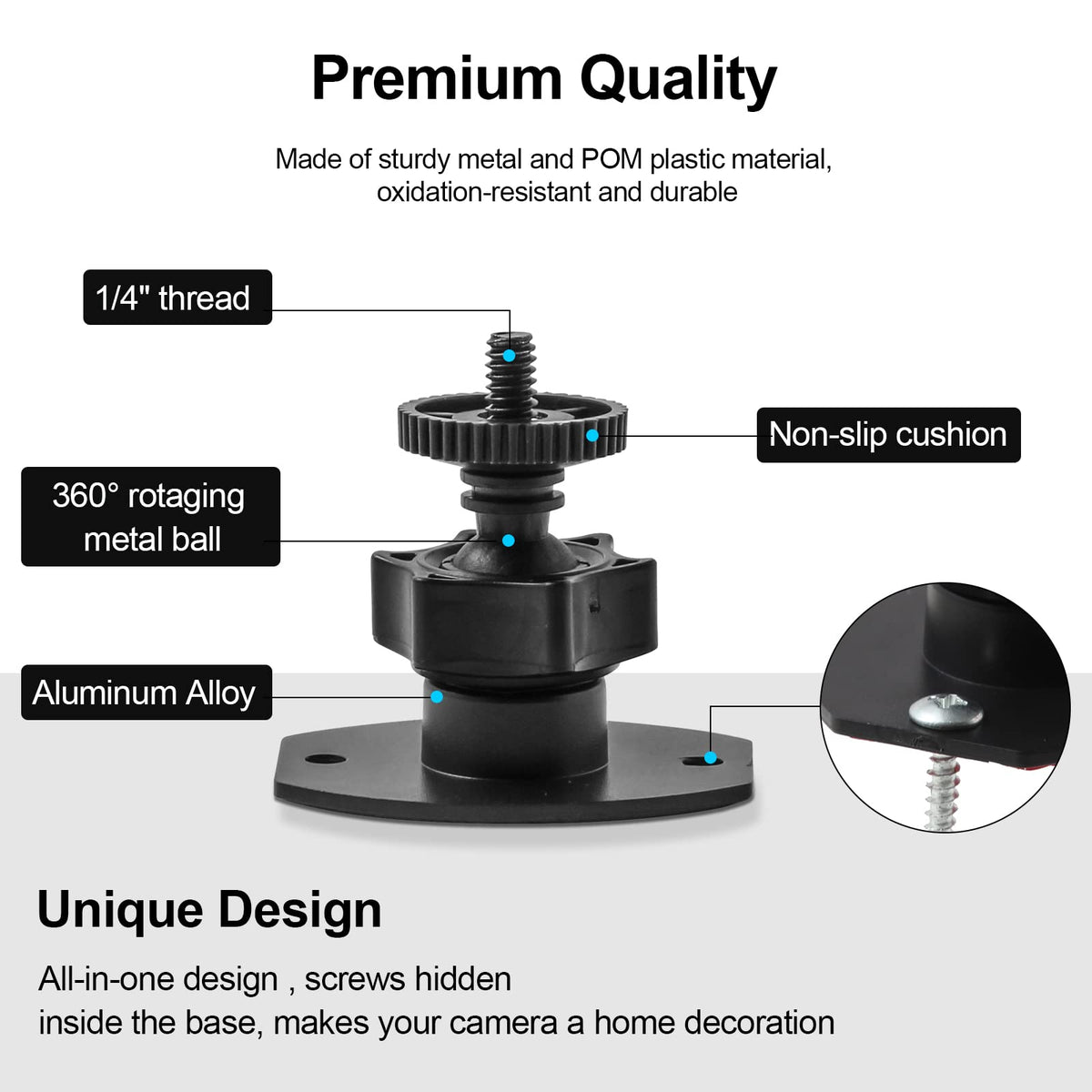 360 Degree Swivel Mini Tripod Ball Head With ''1/4'' Screw Thread | Compatible With Valve Index/Htc Vive Pro/Htc Vive Base Station,And It Also Can Work For Oculus Rift Sensor And Other Camera Camcorder/Lighthouses | With Strong Double-Sided Adhesive,Easy To Install And Flexible.It Will Help You Save Room Space When Install It On Wall.Please Install It On A Clean & Smooth Surface To Get Maximum Holding Strength | Come With Screw Set, If The To-Install Wall Surface Is Not Suitable For Adhensive, Eg, Not Smooth, Can Not Be Sticked Strong/Durable Enough, Please Drill The Wall And Fix By The Screws Provided
