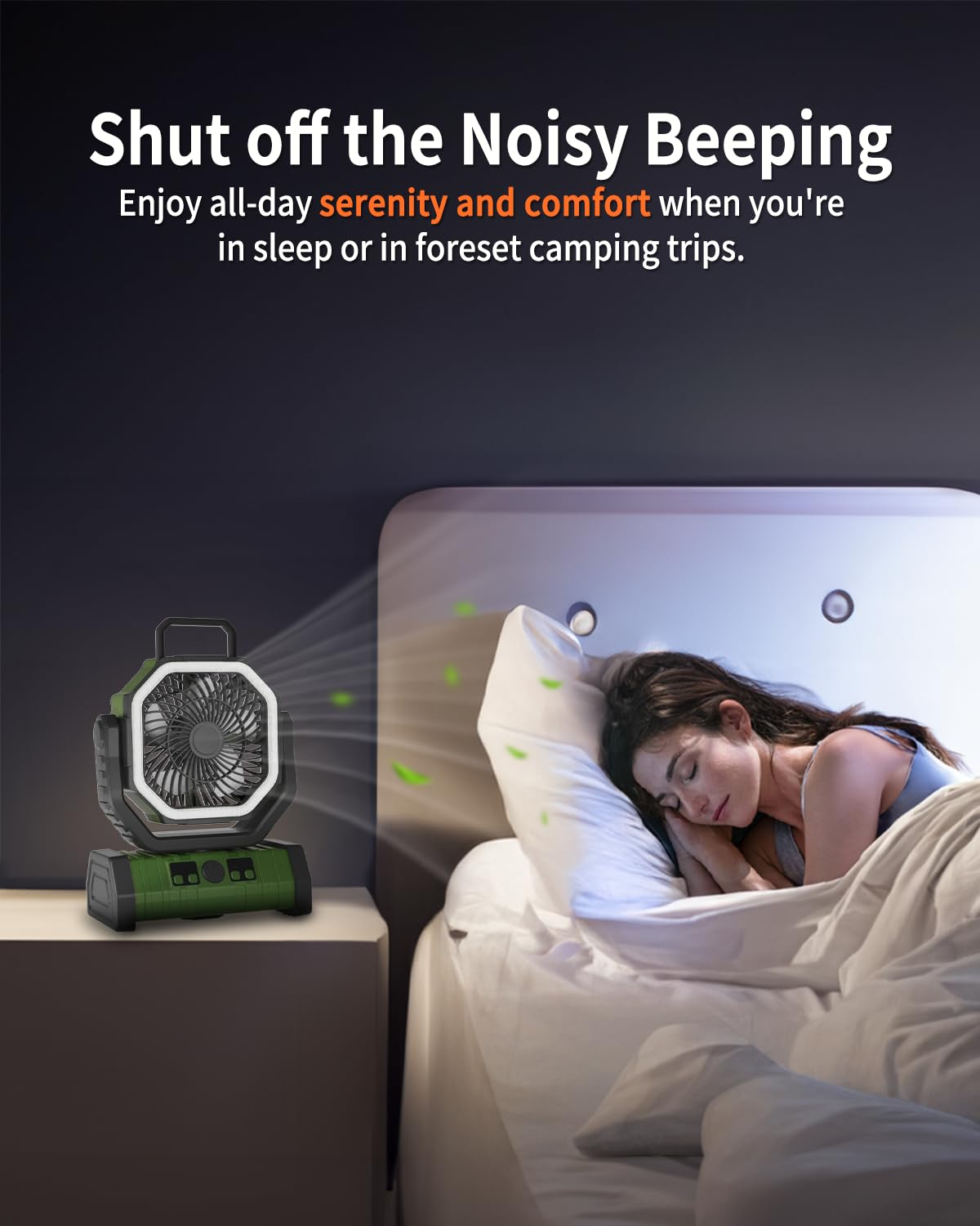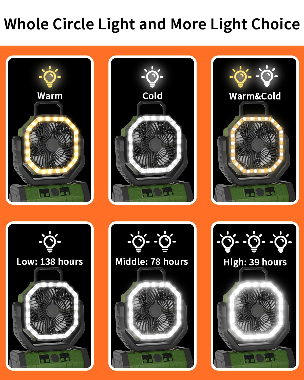 Adust Camping Fan Battery Powered Fan With Led Light 20000Mah Rechargeable Portable Fan, Oscillating Cordless Usb Desk Fan With
