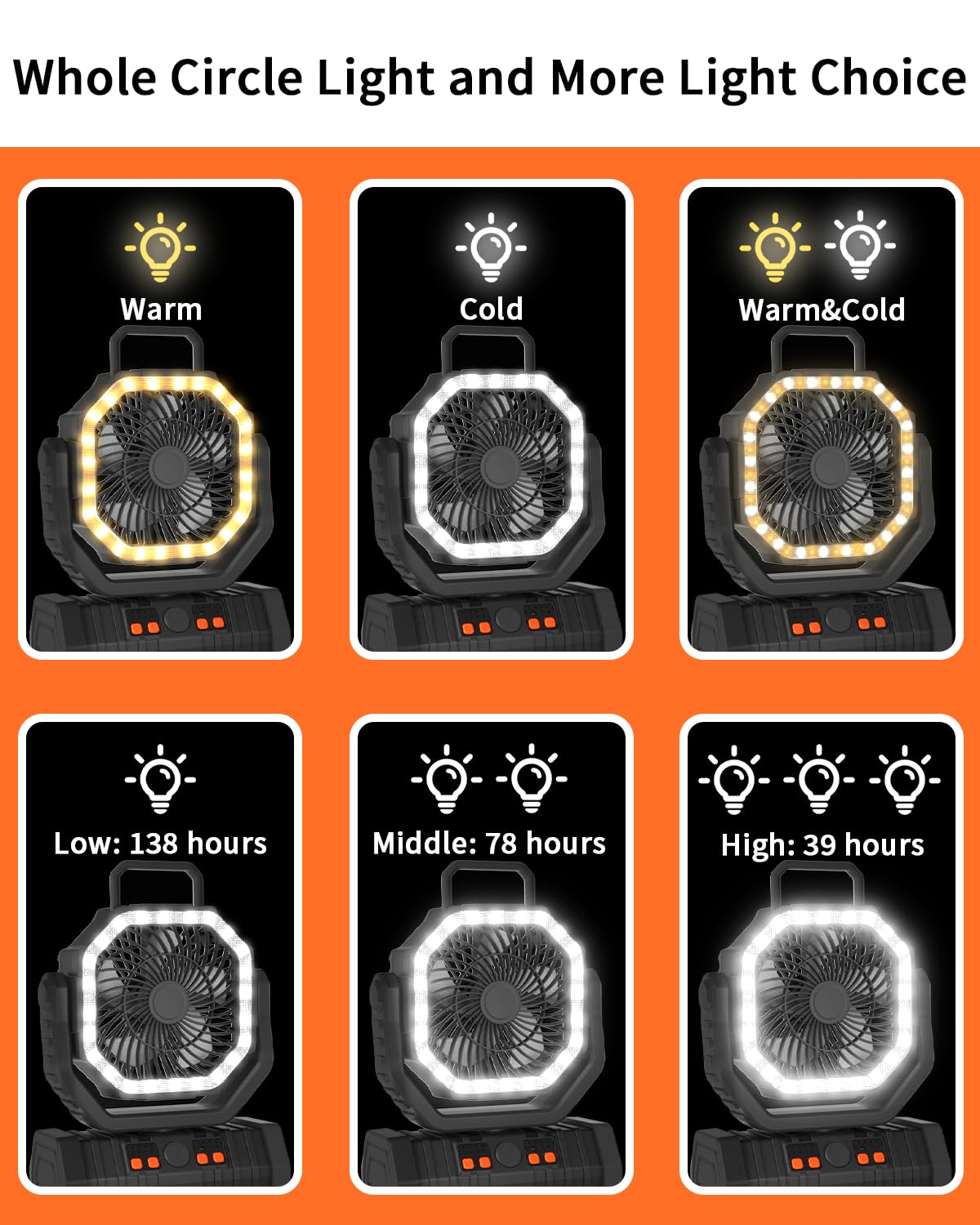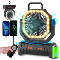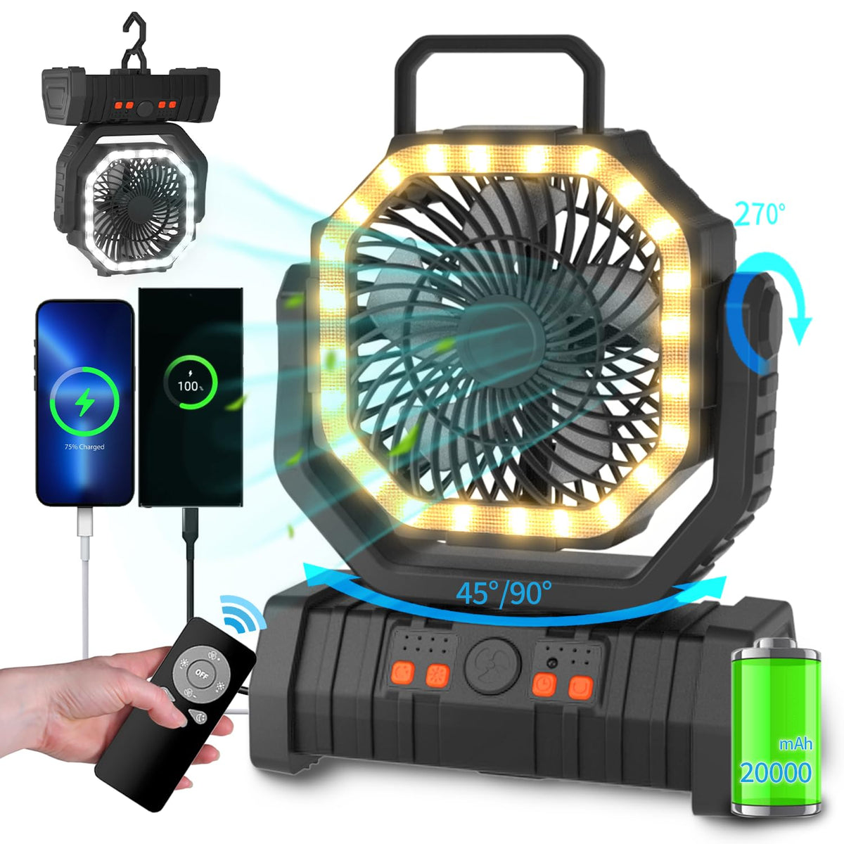 Adust Portable Camping Fan Battery Powered Fan With Led Light 20000Mah Rechargeable Fan, Oscillating Fan With 360 Rotation Hangi