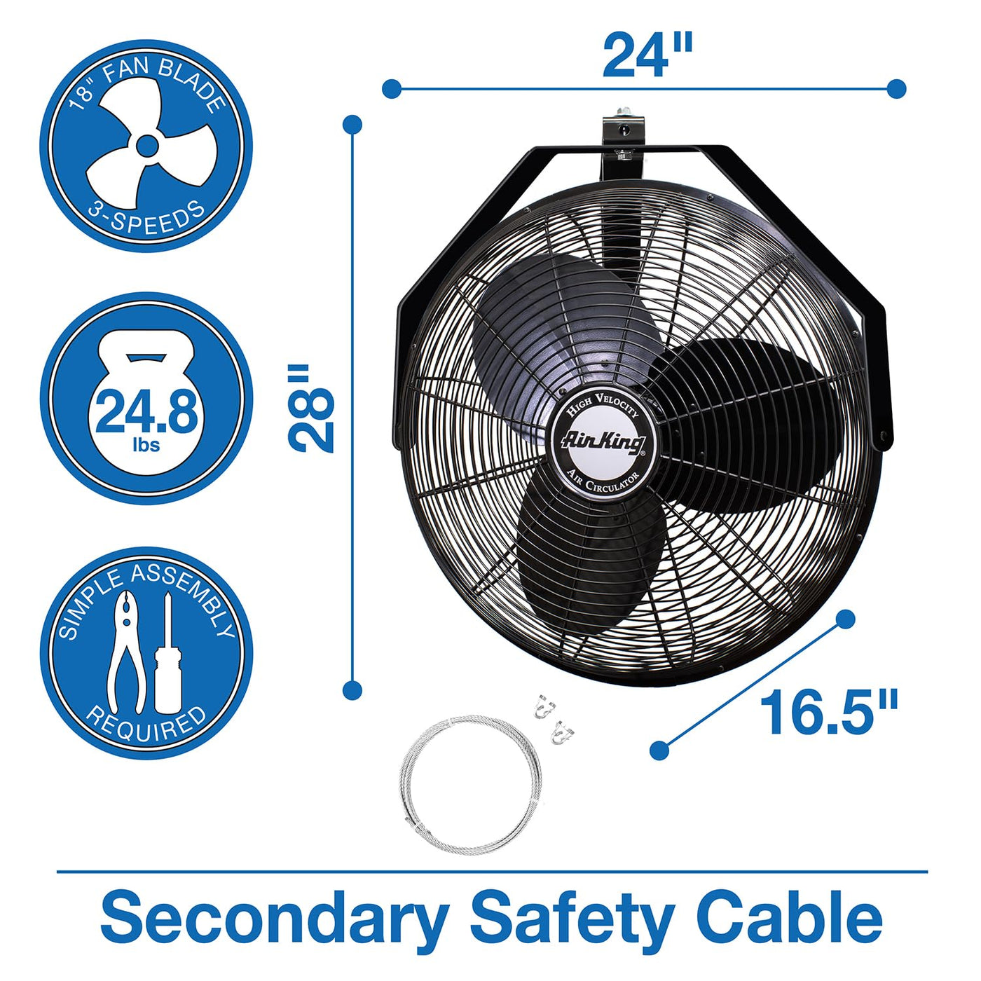 Air King 9518 18 Inch Industrial Grade Wall Mount Fan, 1/6 Horsepower,Black