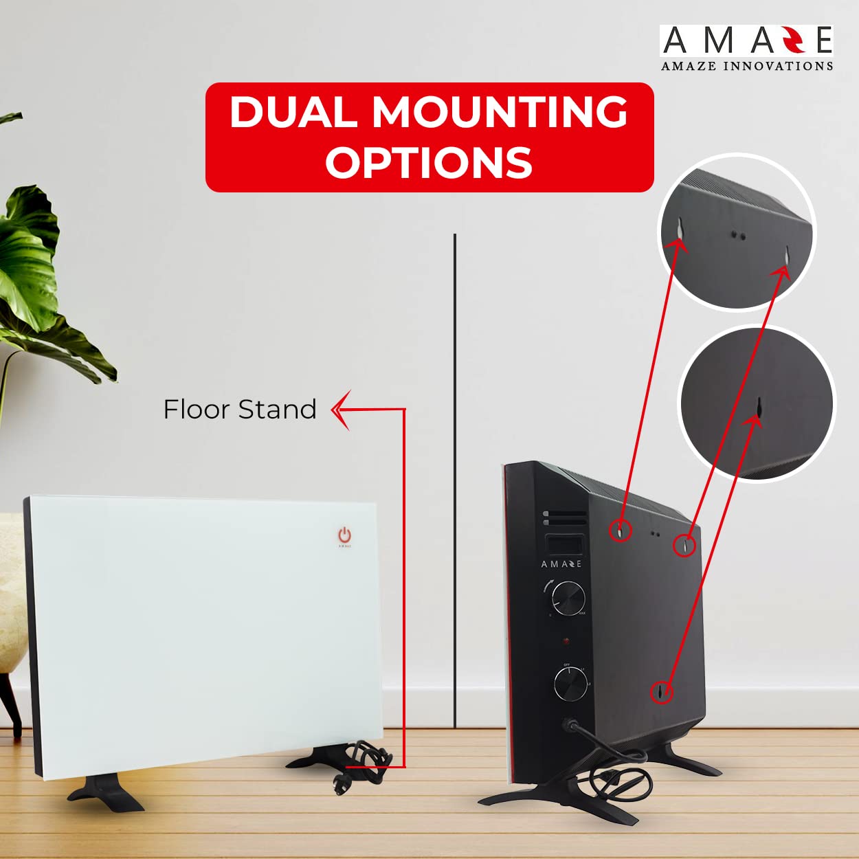 Amaze Heater Classic Model Dual Convection Glass Panel Electric Heater 120V, 450/900 Watt (1534/3068 Btu/Hr) Ideal For 250 T