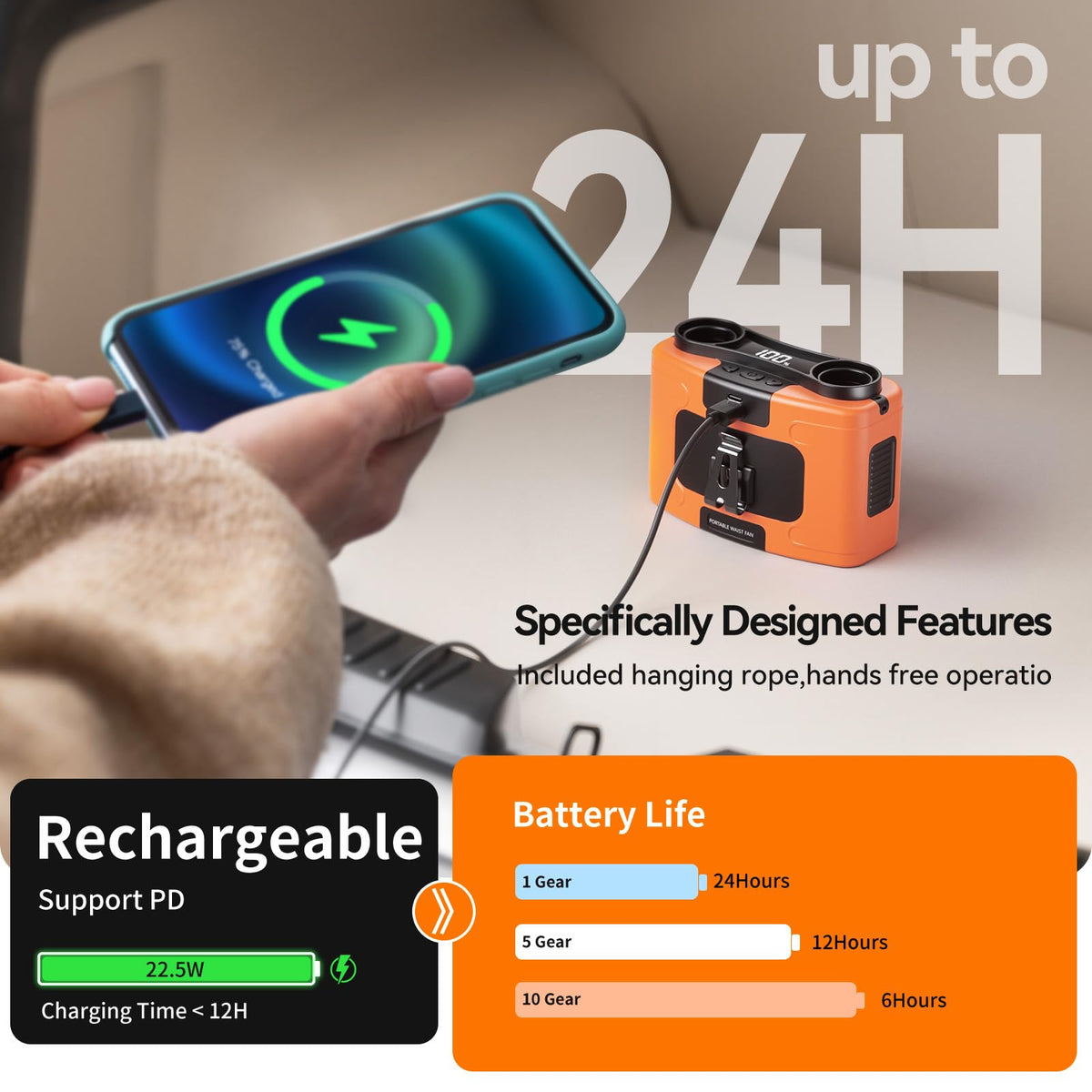 Q: Is the Astaowl Waist Fan suitable for outdoor use?A: Yes, the Astaowl Waist Fan is designed with a tough casing that makes it durable for long-term outdoor use, making it perfect for camping, hiking, or outdoor sports.