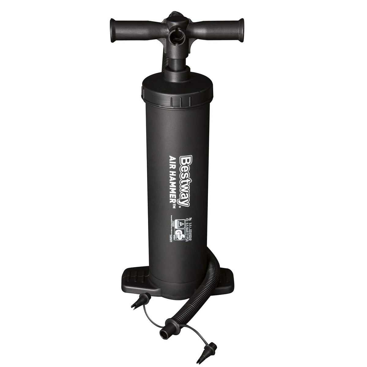 Bestway 19 Inch Air Hammer Pump Is An Ideal Partner For Pool And Air Bed Owners. It Has A Flexible And Durable Hose That Simply Plugs Into An Inflatables Air Valve. Once The Hose Is Secured Inside The Valve Its A Simple Case Of Repeatedly Stroking The Pump Handle Up And Down Until The Inflatable Has Reached Its Air Capacity. The Pump Has An Air Volume Of 2 X 2000 Cubic Centimetres, Making It A Powerful And Highly Efficient Way To Inflate Your Pools And Beds.