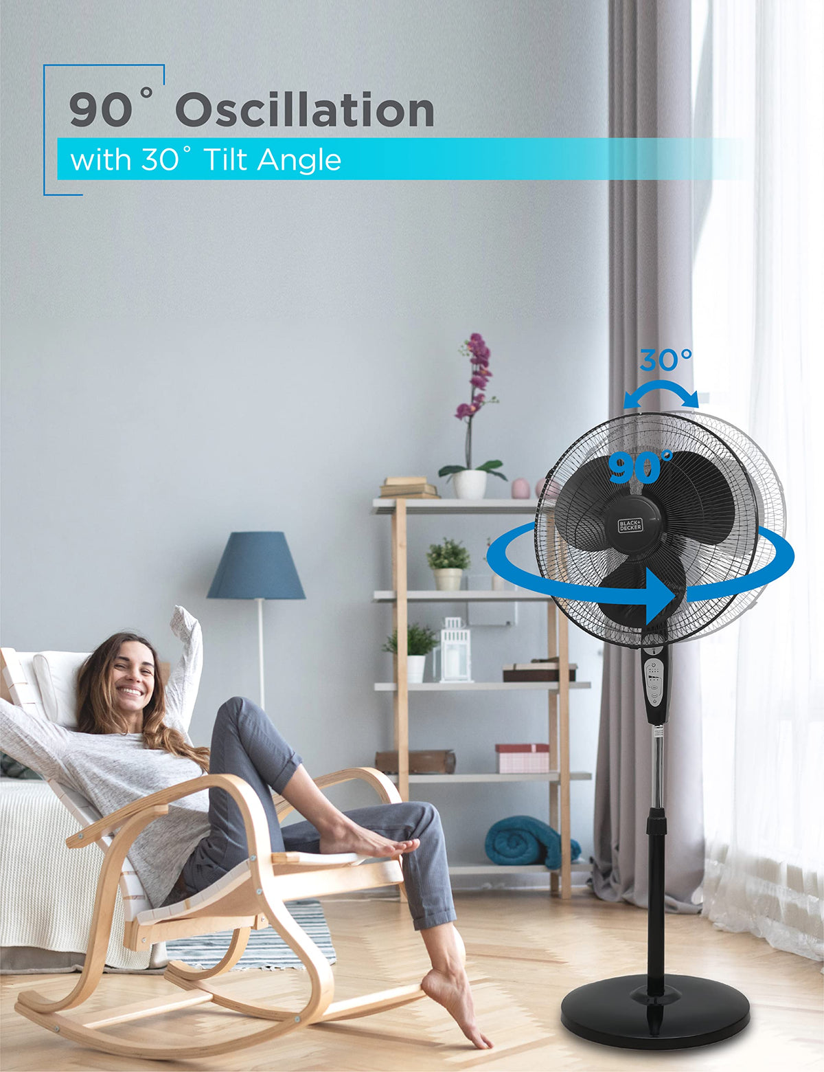 Black+Decker 18 Inch Stand Fan With Pedestal Base, Height Adjustable Pedestal Fan With Remote And Touch Control Panel, Free Standing Fan With 90 Degree Oscillating And 3 Speed Settings, Black
