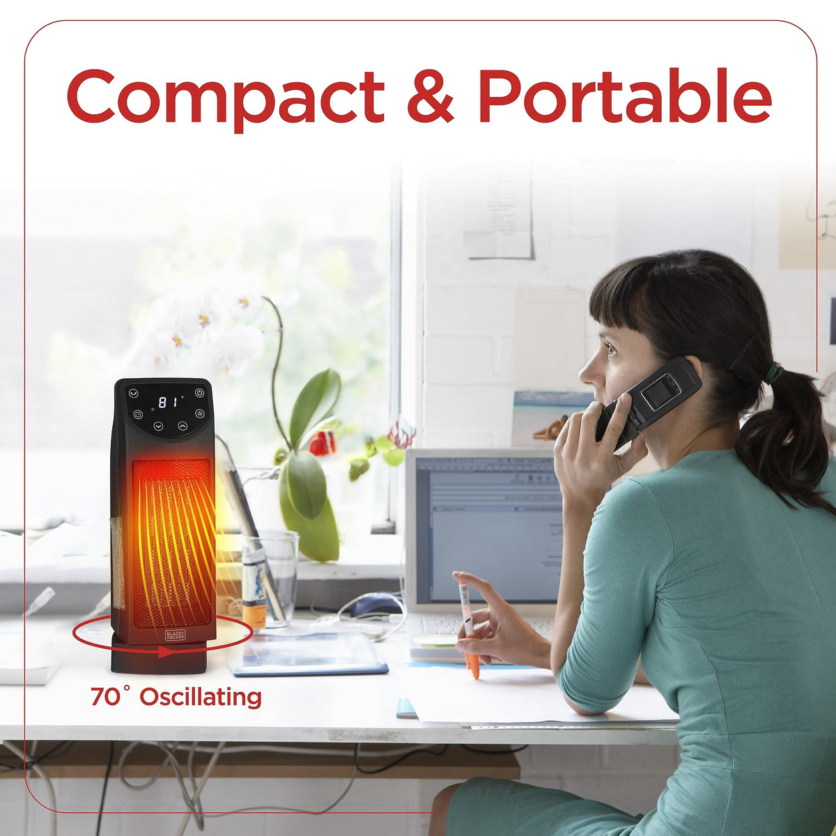 Black+Decker Oscillating Space Heater, Portable Heater With Remote Control, Ceramic Small Space Heater With Two Heat Settings & Led Display, Small Heater 1500W