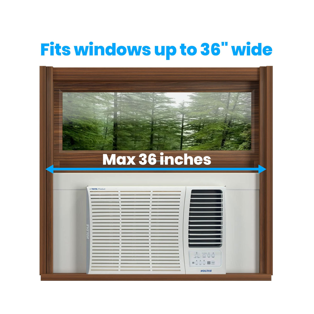 Q: What window sizes does the Breeze Stop Surround Insulation fit?A: The Breeze Stop Surround Insulation is designed to fit windows up to 36 inches wide. The panels can be easily cut to fit snugly between the window frame and the AC unit.