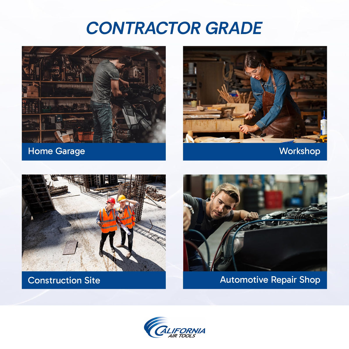 Q: Is the California Air Tools 4620AC suitable for outdoor use?A: Yes, this air compressor is designed to operate in various temperatures and terrains due to its oil-free pump, making it suitable for outdoor use, including cold starts.