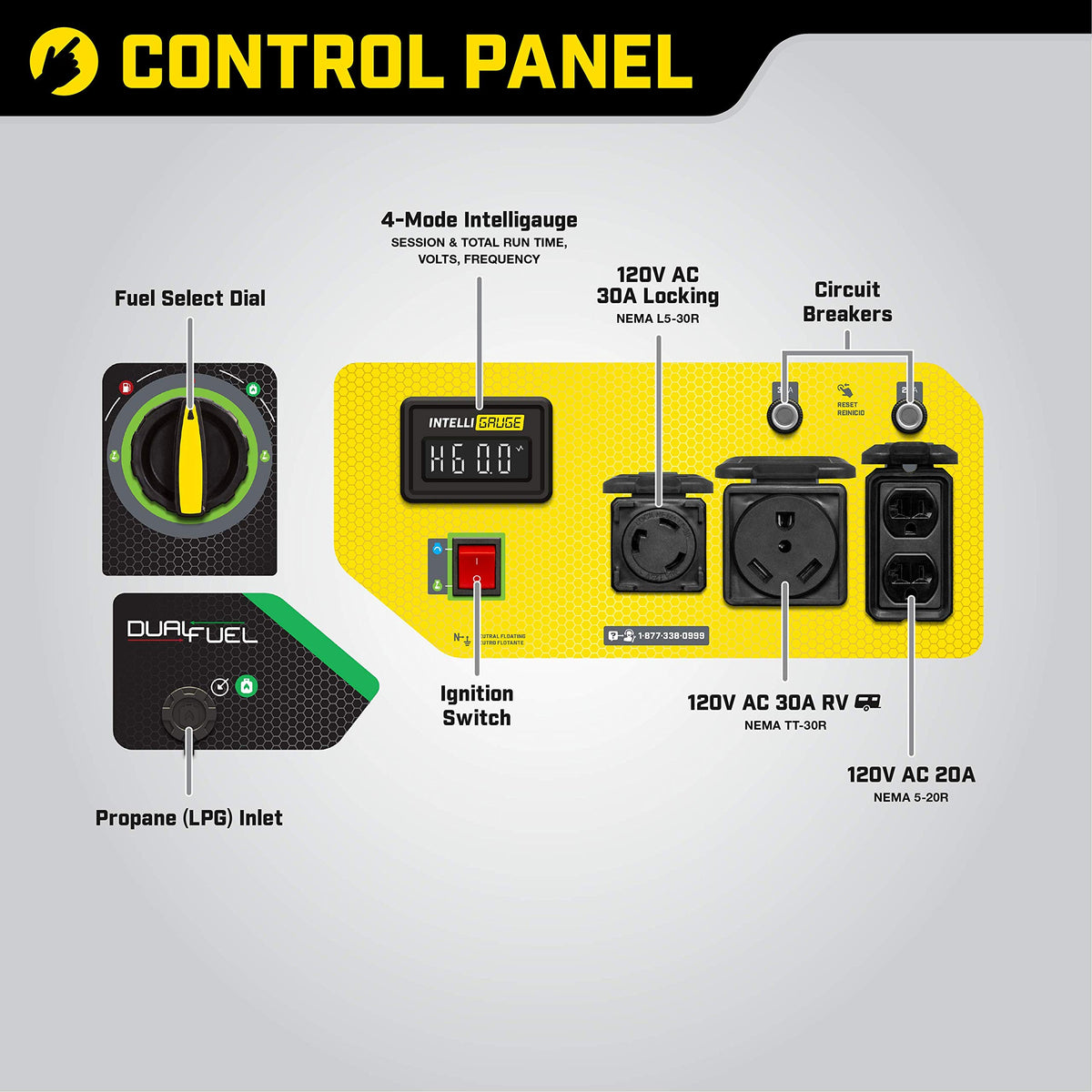 The Champion Power Equipment 201052 3800-Watt Dual Fuel Rv Ready Portable Generator Is The Perfect Combination Of Versatility And Convenience. Whether You Need Power For Your Home Or Rv, Champion Power Equipment Makes Powering Your Life More Convenient Than Ever. With Enough Power To Start And Run A 15,000 Btu Rv Air Conditioner, This Unit Can Also Power The Essential Items You Need In A Power Outage. The Convenient Electric Start Includes A Battery, Plus Cold Start Technology Ensures A Quick Start In Cold Weather. Operate Your Dual-Fuel Generator Right Out Of The Box On Gasoline Or Propane - Our Patented Fuel Selector Switch Allows For Safe Switching Between Fuel Sources. Using Gasoline, The 224Cc Champion Engine Produces 4750 Starting Watts And 3800 Running Watts, And Will Run For 14 Hours At 50% Load When The 4.7-Gallon Fuel Tank Is Full. It Produces 4275 Starting Watts And 3420 Running Watts, And Will Run For 10.5 Hours At 50% Load When Using A 20-Pound Propane Tank. With A Noise Level Of 68 Dba From 23 Feet, Which Is About As Loud As A Vacuum, This Unit Features Volt Guard Built-In Surge Protector Which Prevents Overloads And Keeps Your Equipment Safe. Easily Monitor Power Output And Track Maintenance Intervals With Intelligauge, Which Allows You To Keep Track Of Voltage, Hertz And Run-Time Hours. Designed With A Low Oil Shut-Off Sensor, This Unit Has A 0.6-Quart Oil Capacity ( Bottle Of 10W-30 Oil Inlcuded). Plenty Of Outlets Are Available, With A 120V 30A Rv (Tt-30R), A 120V 30A Locking Outlet (L5-30R) And Two 120V 20A Household Outlets (5-20R). Champions Thoughtful Packaging Make Setup Hassle Free, Plus The Foldaway Handle Makes It Easy To Store, While The Never-Flat Tires In The Included Wheel Kit Make Transport A Cinch. Buy This Epa Certified And Carb Compliant Generator With Confidence - Champion Support And Our Nationwide Network Of Service Centers Will Back Up Your Purchase With A 3-Year Limited Warranty And Free Lifetime Technical Support.