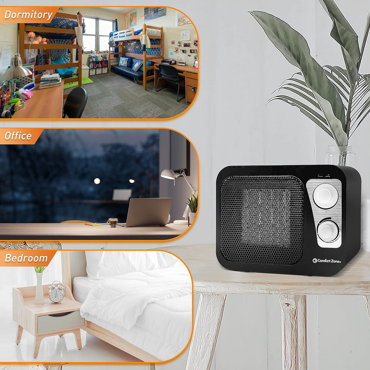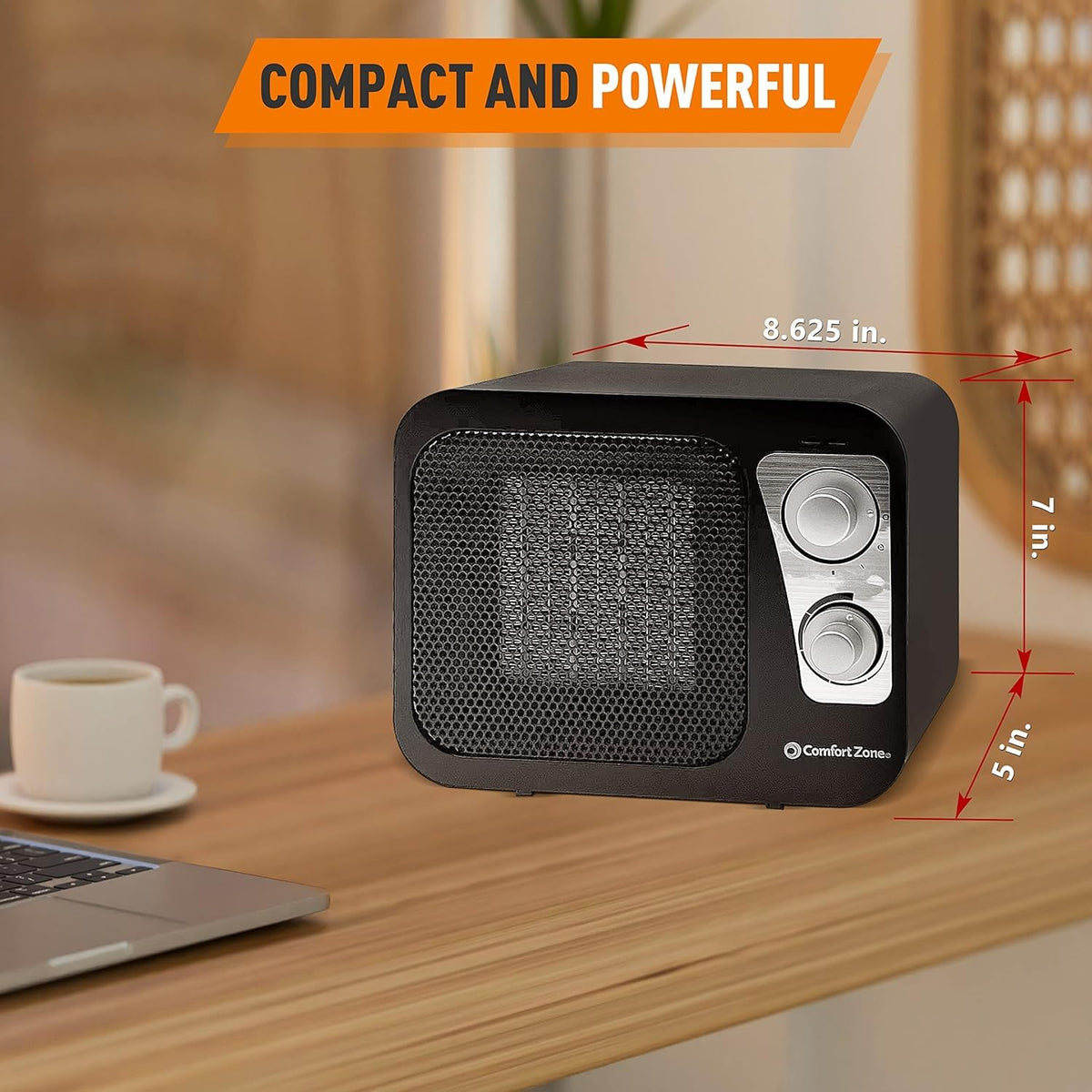 On The Lookout Or A Stylish Heater You Can Display In Your Room?Keeping Your Place Warm And Cozy Is Crucial During The Winter Season. A Warm Space Is Not Only Comfortable, But It Also Helps Get Your Blood Flowing, Allowing Us To Be More Productive Throughout The Day.However, Most Heaters Can Look Dull, If Not Unsightly. Plus, Many Are Too Bulky To Move Or Bring Around. Thankfully, There Are Portable Heating Devices That Combine Functionality With Style!Relax In A Warm And Comforting Space With The Comfort Zone Retro Design Small Ceramic Heater!Make Sure You'Re Always Ready To Face Even The Frostiest Climates. This Compact Ceramic Heater Is Equipped With An Adjustable Thermostat And 2 Heat Settings, So You Can Keep Your Place Warm And Comfortable Throughout The Cold Seasons. It Even Has A Fan-Only Setting For Times When You Just Need To Circulate The Air In Your Rooms.Encased In A Metal Housing With Molded Handles, This Heater Is Designed To Stay Cool Even While You'Re Using It. Each One Features A Safety Tip-Over Switch, So It Automatically Turns Off When It Gets Tipped Over. It Also Boasts An Overheat Protection System That Keeps It From Reaching Extreme Temperatures.More Than The Functionality It Offers, This Cute Heater Also Makes For A Charming Addition To Your Space. Choose From Our Burnt Orange And Black Heaters To Spruce Up Your Rooms. Each One Flaunts A Unique Retro-Modern Design That Will Look Great In Any Bedroom, Living Room, Kitchen, Or Dining Area!Still Not Convinced? Here Are More Reasons You Should Get This Heater:- Etl Approved For The U.S. And Canada- Long, 6 Ft. Polarized Power Cord- Thoughtful Housewarming Gift For Friends And Familyheat Up Your Room In Style. Add The Comfort Zone Retro Design Small Ceramic Heater To Your Cart Today!