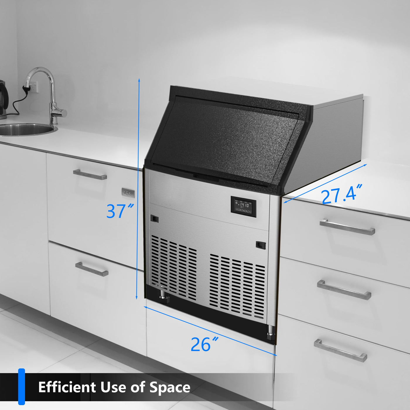 Coolake Commercial Ice Maker Machine 450Lbs/24H With 130Lbs Storage, Stainless Steel Under Counter Ice Maker, Descaling Water Fi