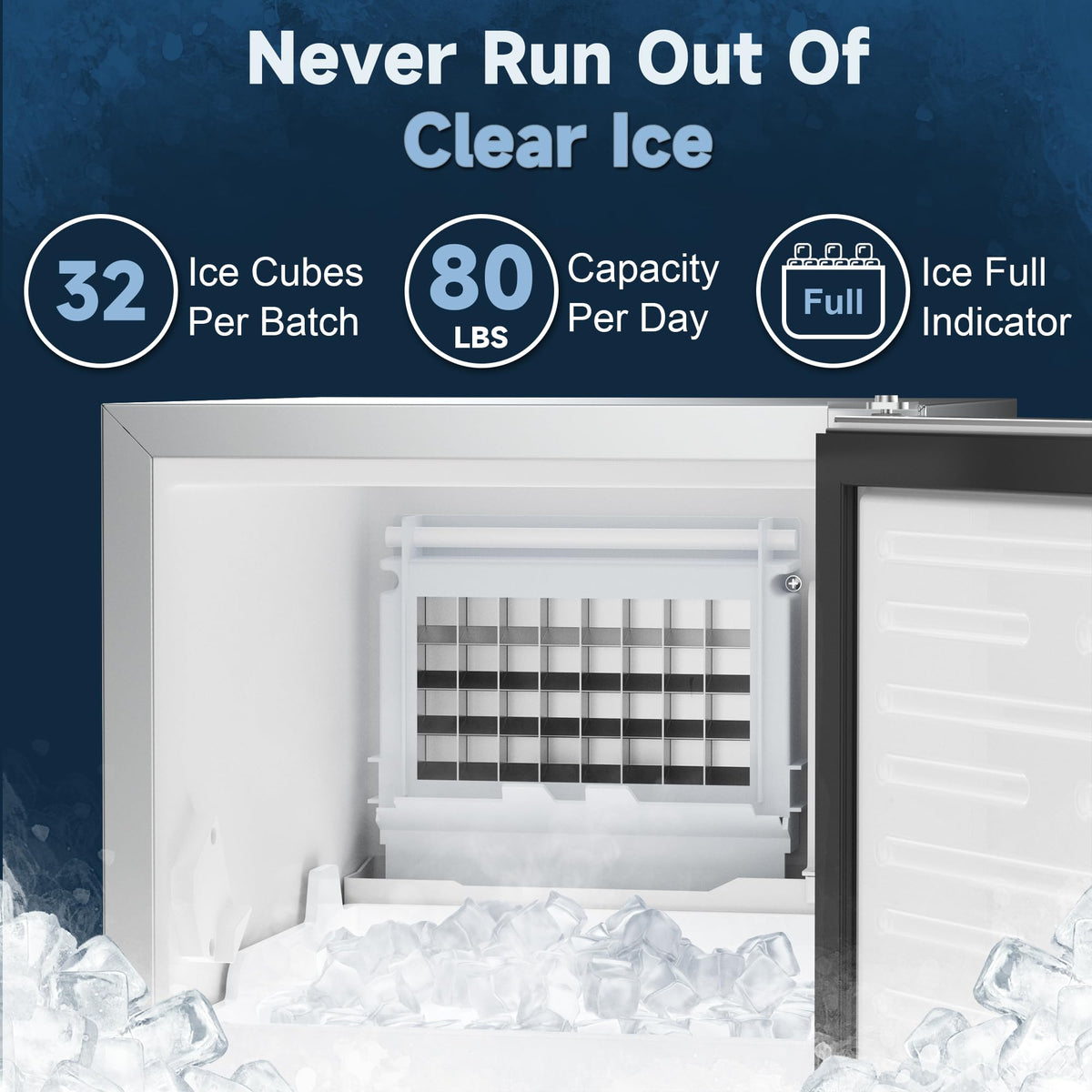 Coolski Under Counter Ice Maker Machine, Stainless Steel Built-In Freestanding Ice Maker For Commercial & Home Use, 80 Lbs/Day,