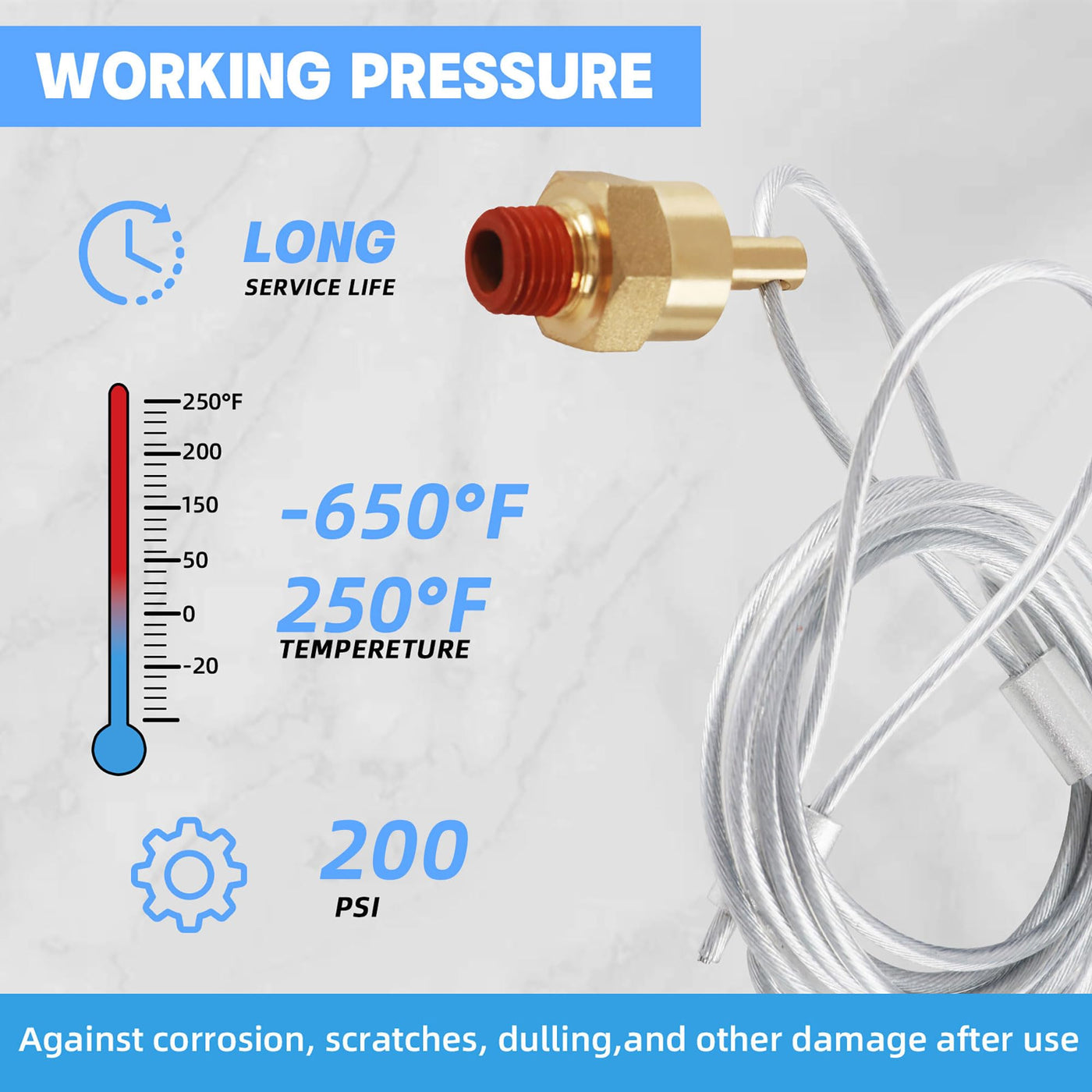 Q: How does the cable system enhance the functionality of the drain valve?A: The 60" steel nylon cable allows for easy pulling to release moisture without needing to crawl under the tank. This design enhances user convenience, making it easier to maintain air systems and ensuring that moisture is effectively drained.