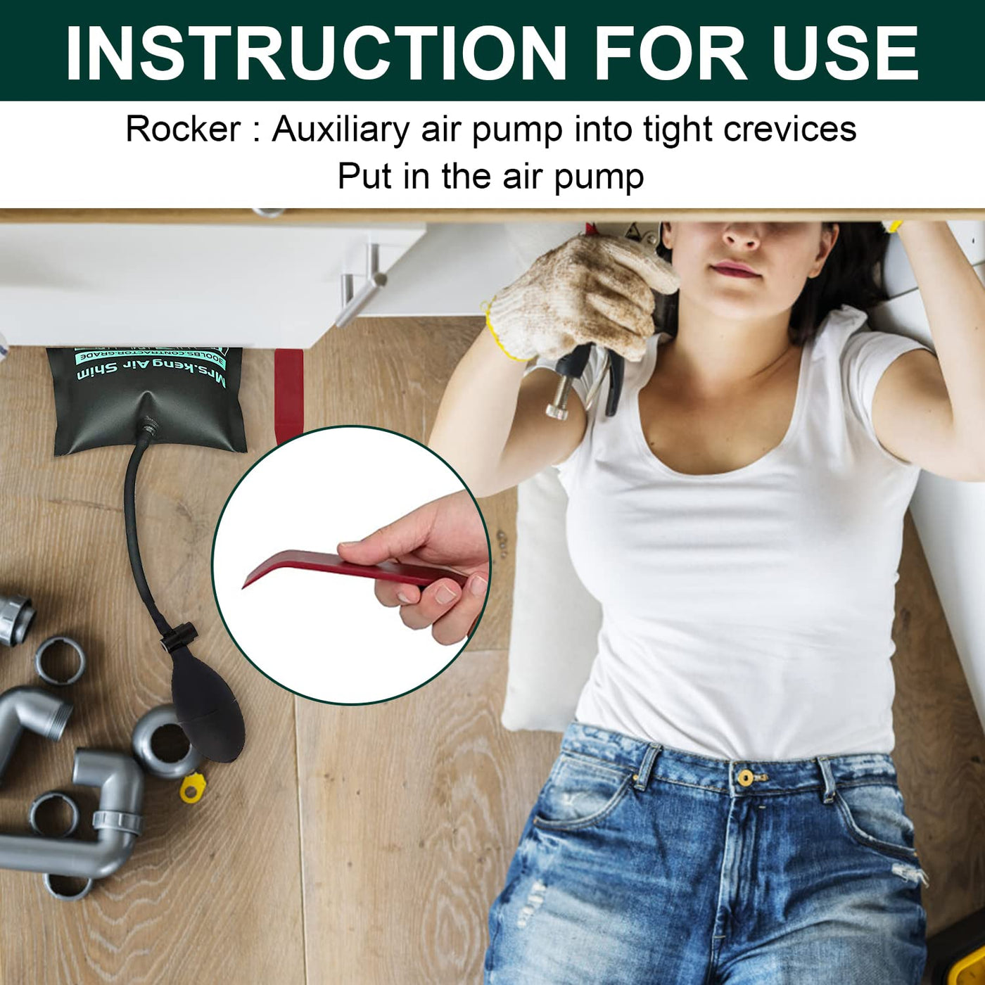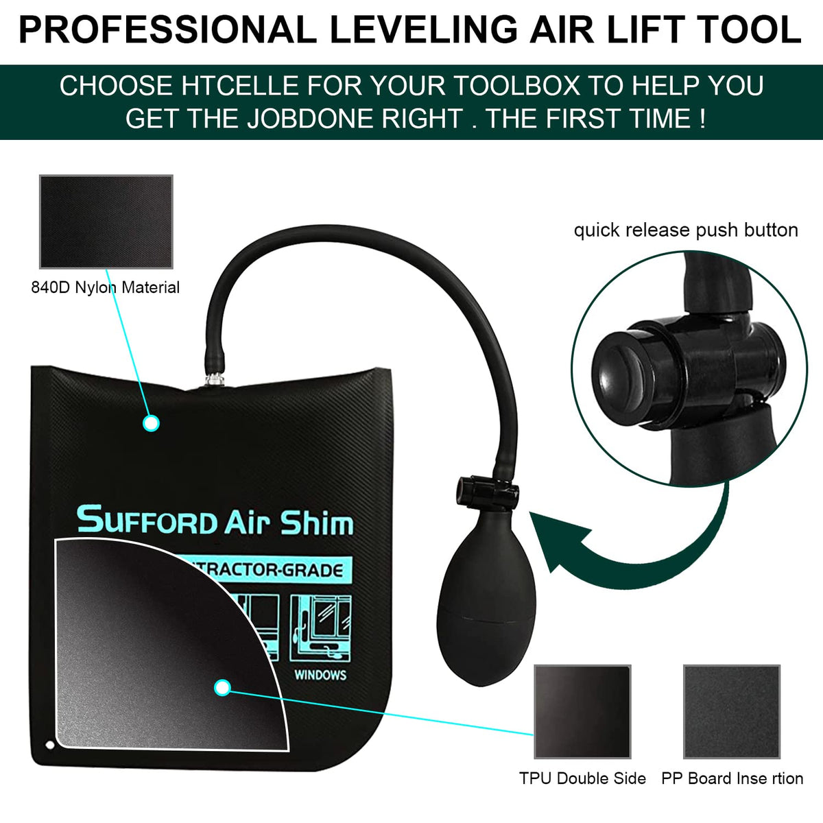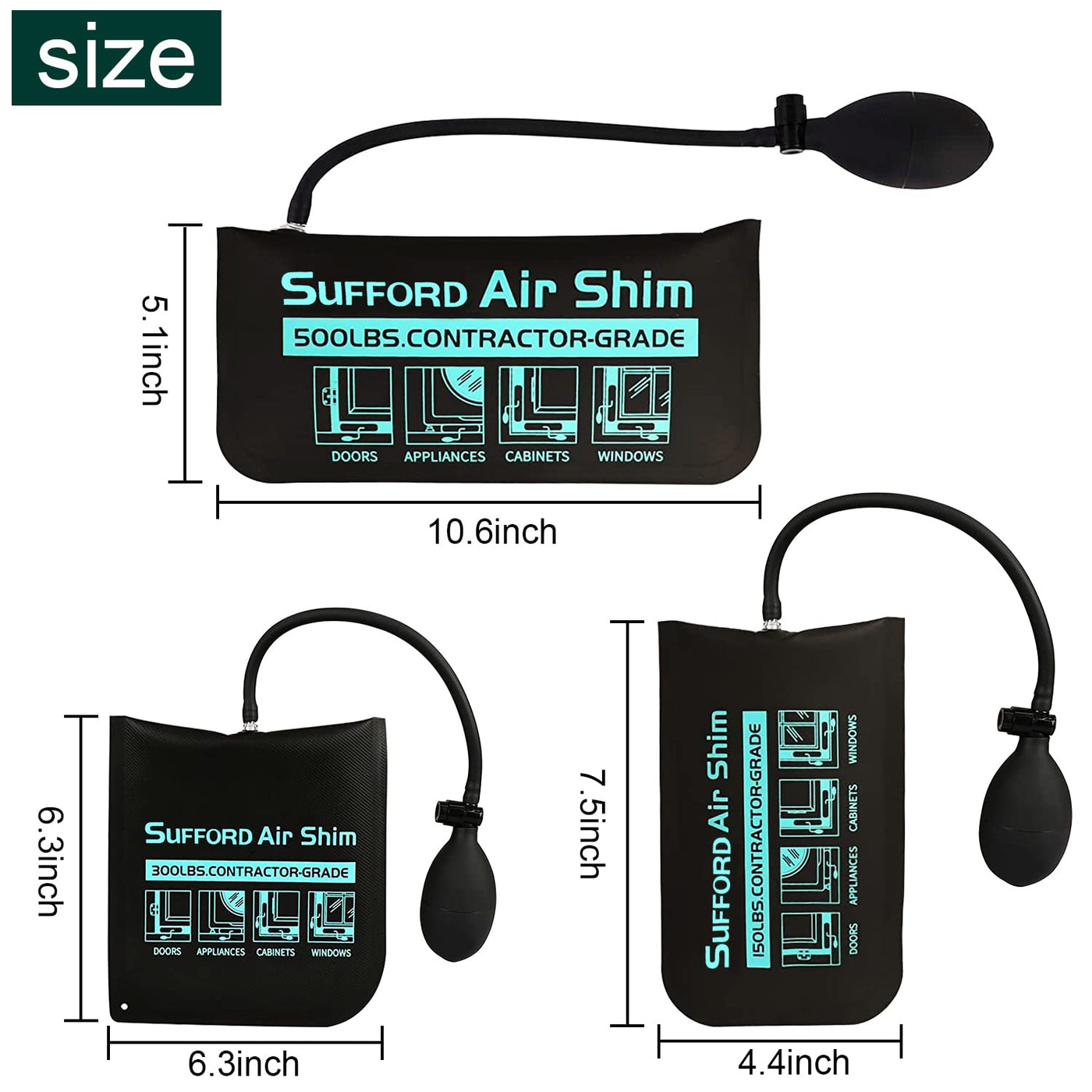 Air Wedge Kit- Attention To Details To Meet Your Expectations Strong And Durable Built To Last 1. Thick Inner And Outer 0.8 Mm Tpu Material 2. Upgrade 840D (Durable Than 420D) Nylon Material To Higher Abrasion Performance. 3. Upgrade Pp Board Insertion (Stronger Than Abs Board), Not Easy Break. 4. Double Vacuum Sealed Vulcanized No Fray Edges. Highlights 1. Rounded Corner Design Allows Options Of Different Points Of Enter At Access Point. 2. High Quality Sturdy Hand Pump Design With Easy Push Button Air Release Valve 3. Longer 10 Inches Hose Design From Bag To Pump Allow Manipulation Of The Air Bag Into A Further Distance 4. Thin As A Hand Of Playing Cards At 2/32 Inches When Deflated, Inflates Up To 2 1/2 Inches To Raise, And Level Your Work Space.