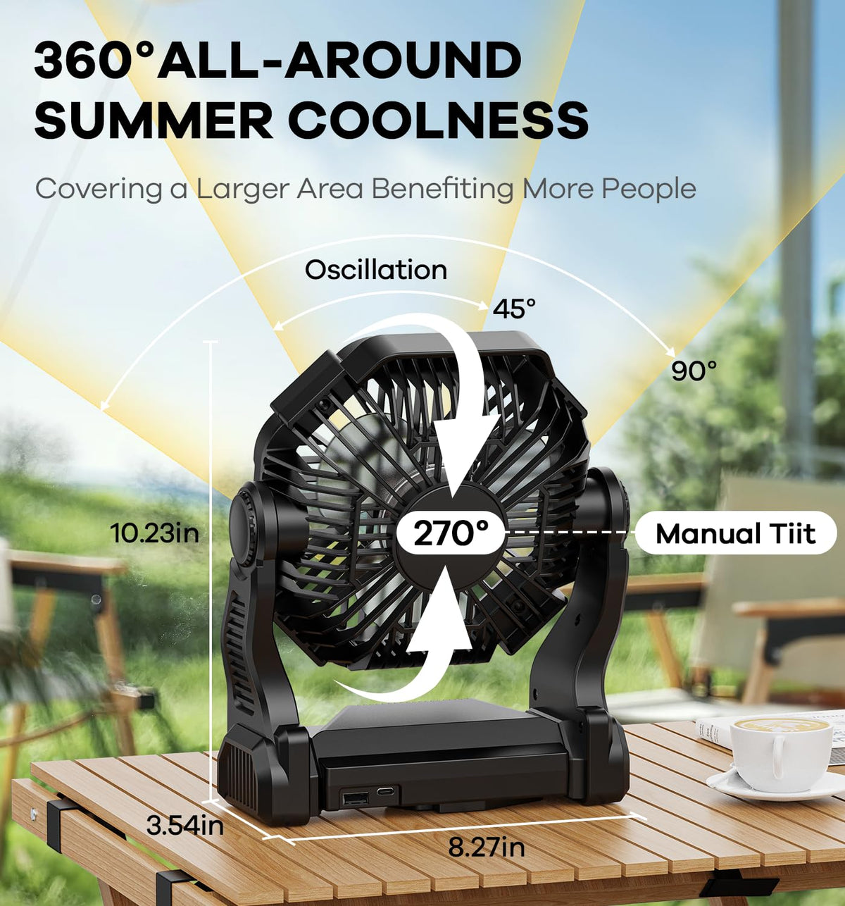 Dowilldo 30000Mah Portable Battery Powered Camping Fan - With Led Light, Quiet Battery Operated, Camping Gear For Travel, Tent,