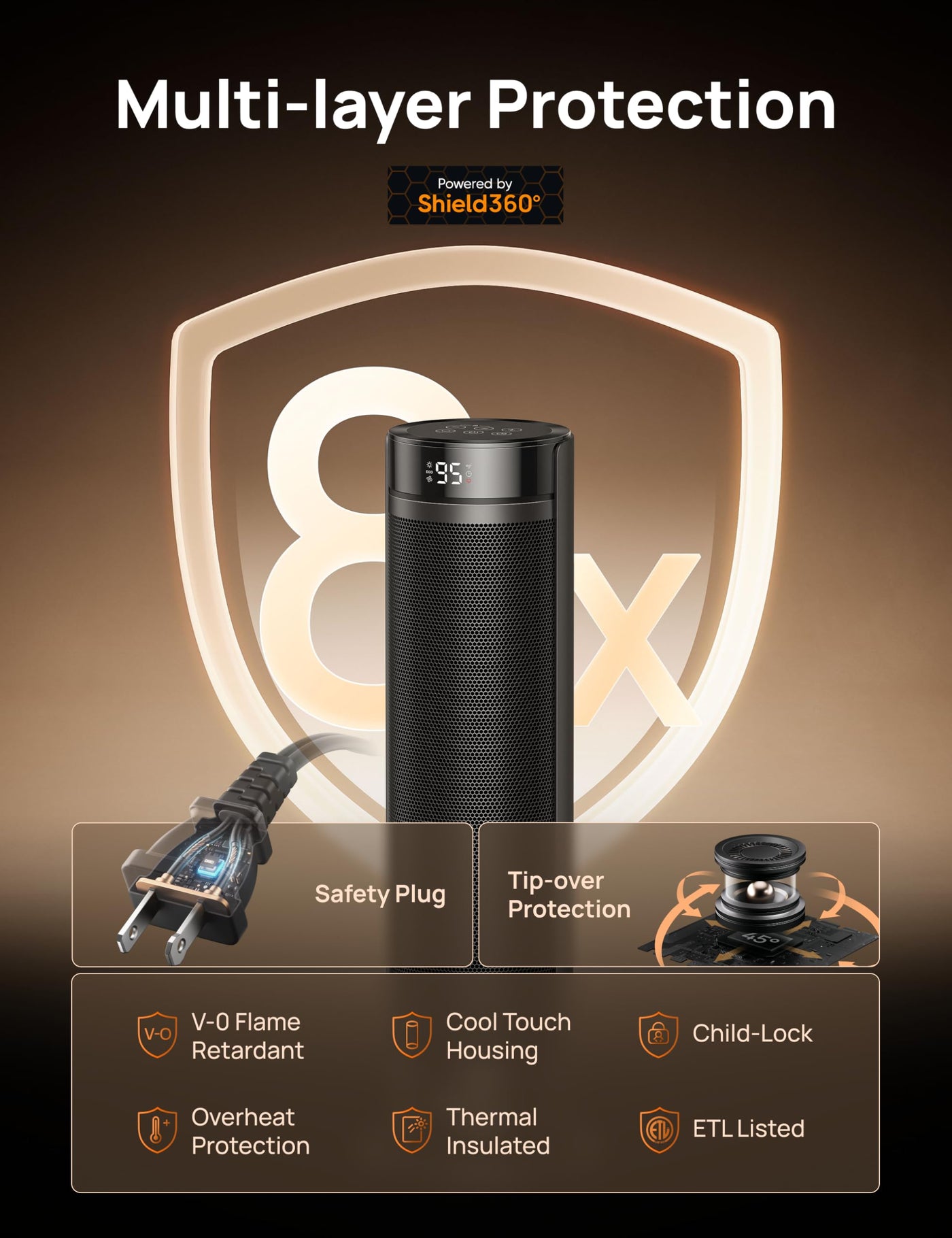 Dreo Space Heater For Large Room, 23 Inch Electric Heaters For Indoor Use, 8 Safe Protection Tower, 70 Oscillation, Ptc Ceramic