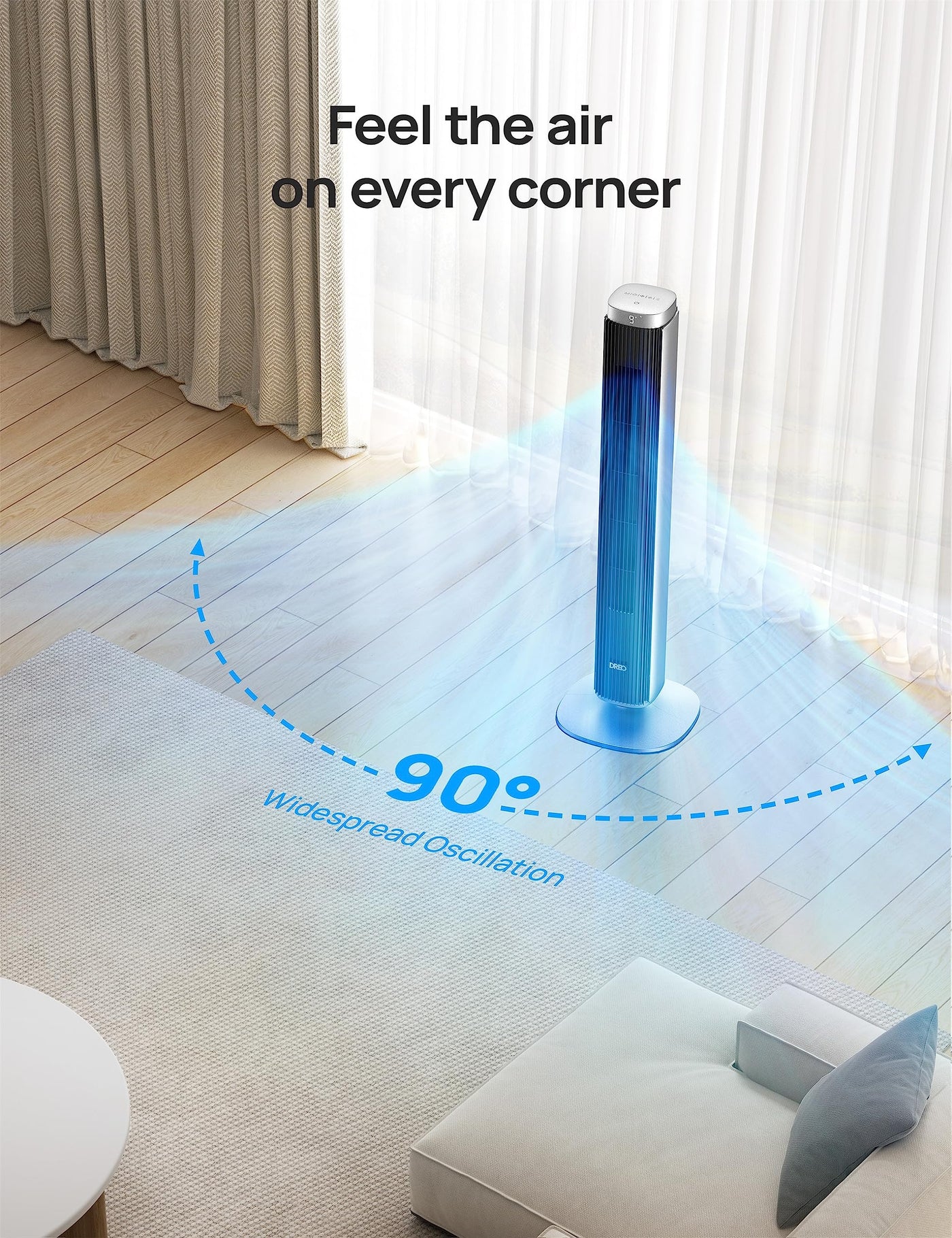 Q: Can I control the Dreo Tower Fan with my smartphone?A: Yes, the Dreo Tower Fan is equipped with smart technology that enables control through the Dreo App. You can easily adjust settings from anywhere, whether you're at home or away.