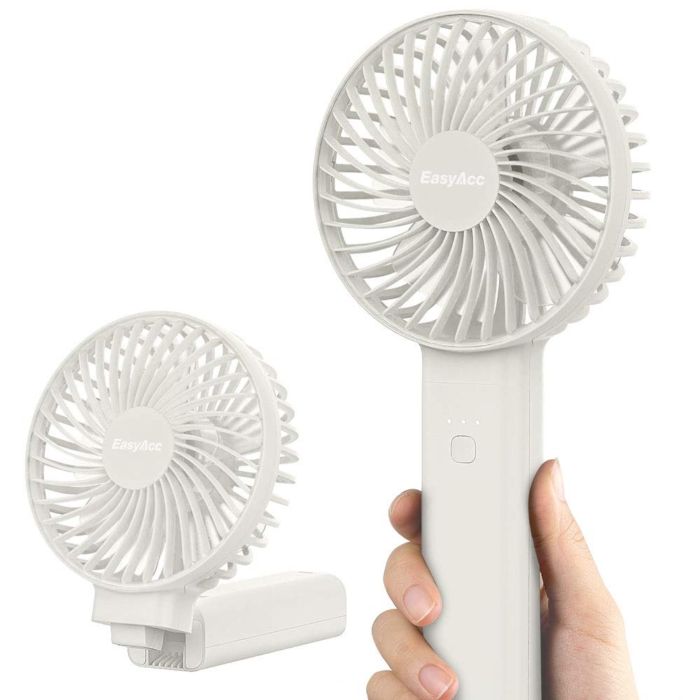 Easyacc Handheld Fan, 2023 Newly Powerful Quiet Portable Fan Small Desk Fan [ 4 Speed/Battery Indicator/Easy Clean] 17H Battery
