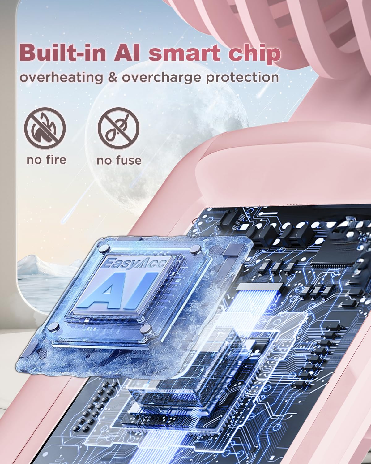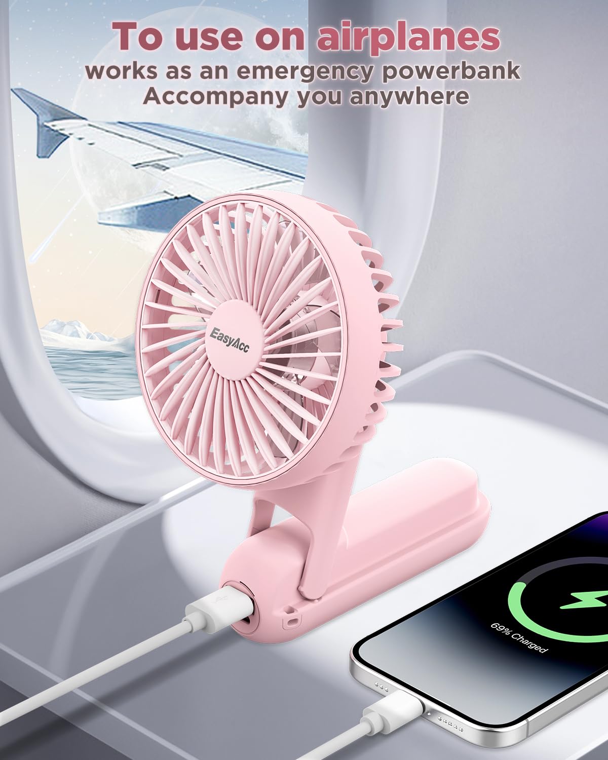 Easyacc Portable Fan For Travel,Rechargeable Handheld Fan, 5 Speed Ultra Quiet 3 18H With Backup Power Battery Digital Display F