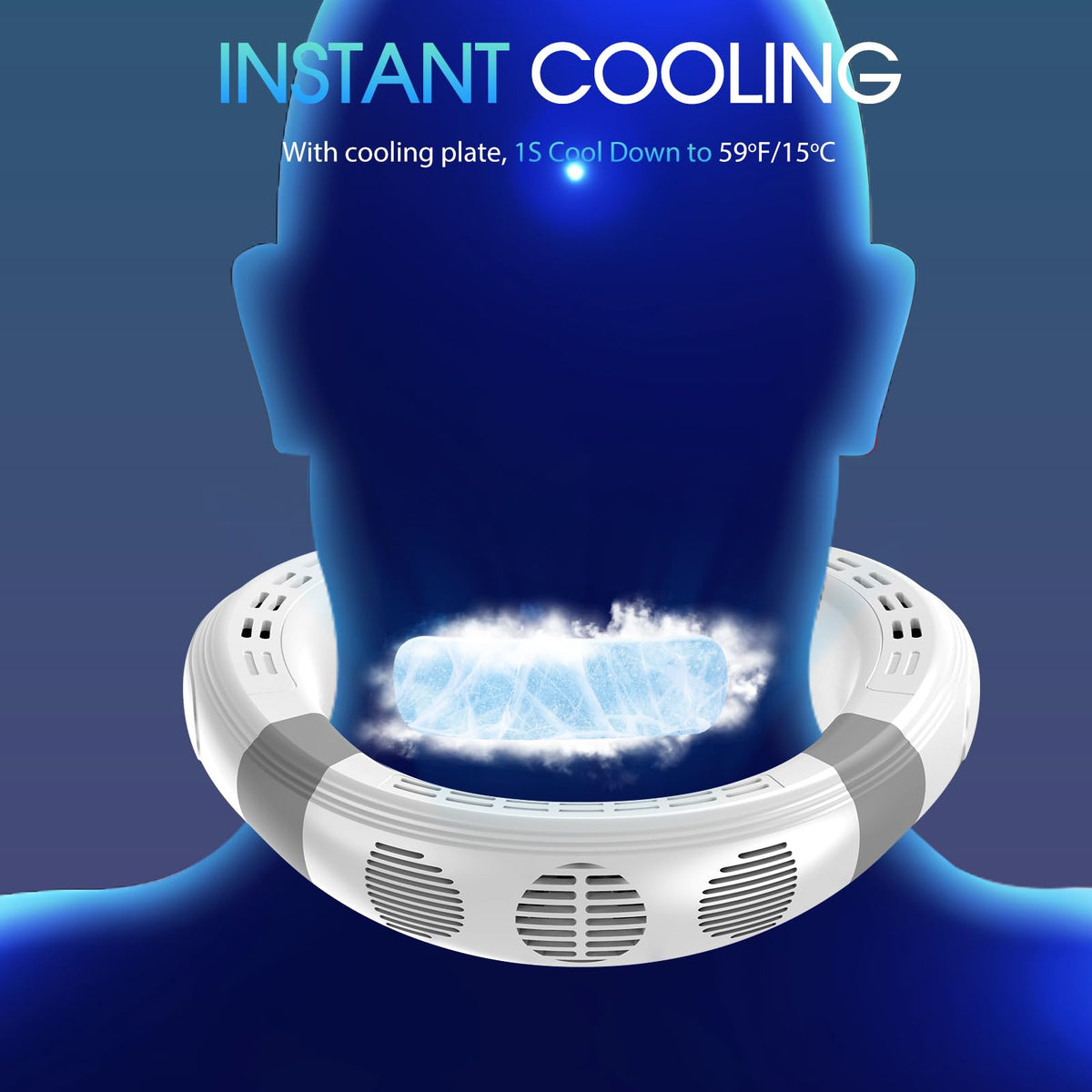 Neck Fan With Cooling Plate|Neck Air Conditioner|4400Mah Rechargeable Battery Operated|Cooling Neck Fan For Women And Men(White)