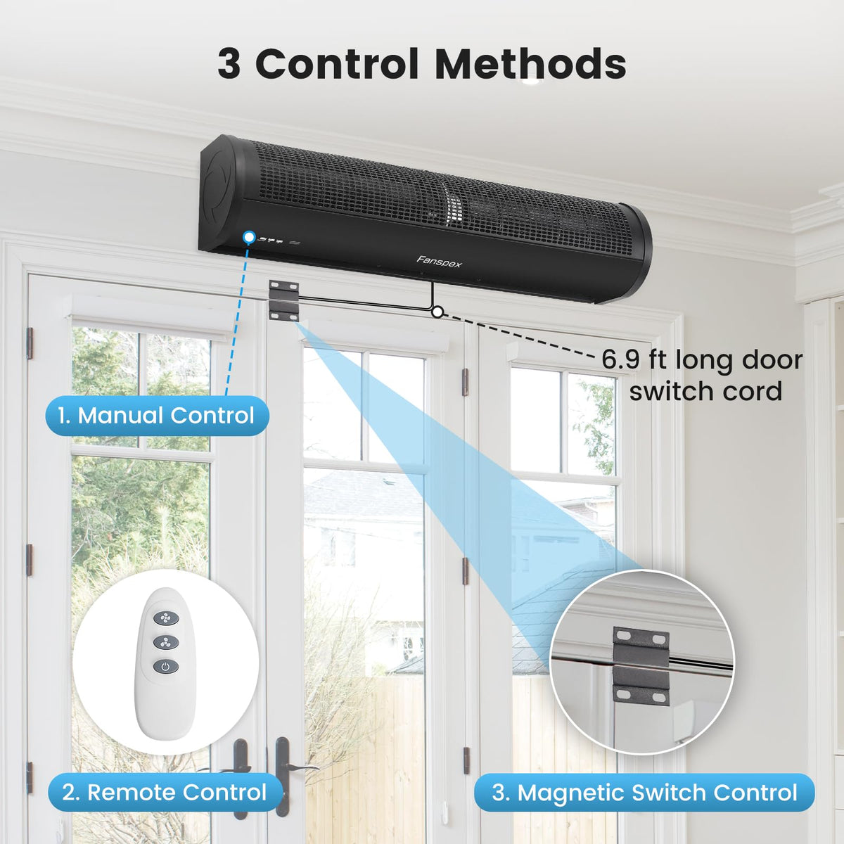 Fanspex 36'' Wall Mounted Air Curtain, High Velocity Commercial Over Door Fan For Home Garage Shop Restaurant, 2-Speed, 120W Low