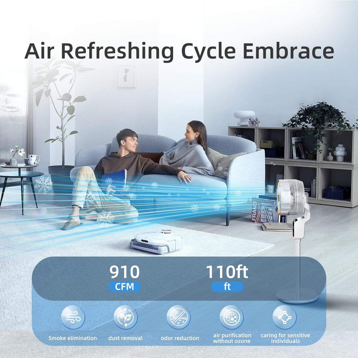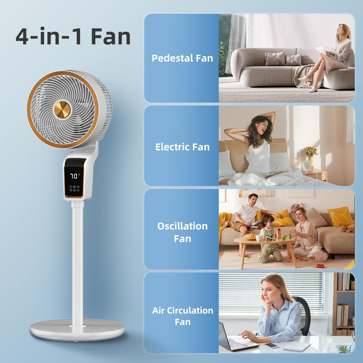 Feculs Official Standing Fan With Remote, Fans Oscillating With 12H Timer, 3 Speeds, Temperature Display, 36-50Db Floor Fans For