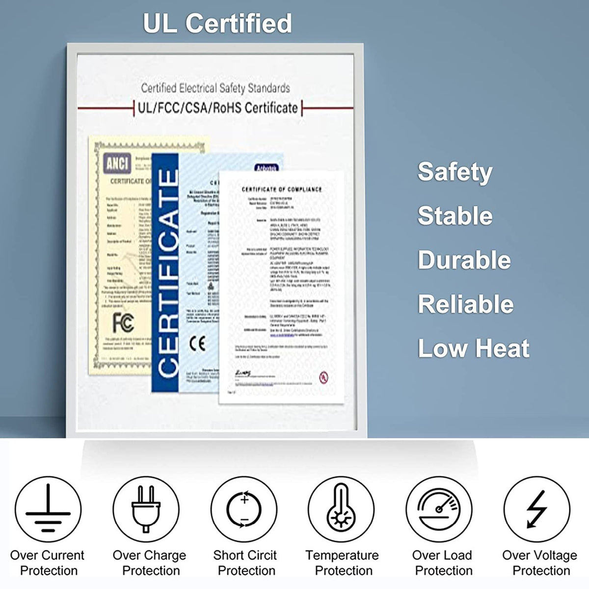 Q: What safety certifications does the Jackery 90W AC adapter have?A: The Jackery 90W AC adapter is UL, FCC, CE, GS, PSE, ICC, and RoHS certified, ensuring it meets top industry safety standards for reliable and safe operation.