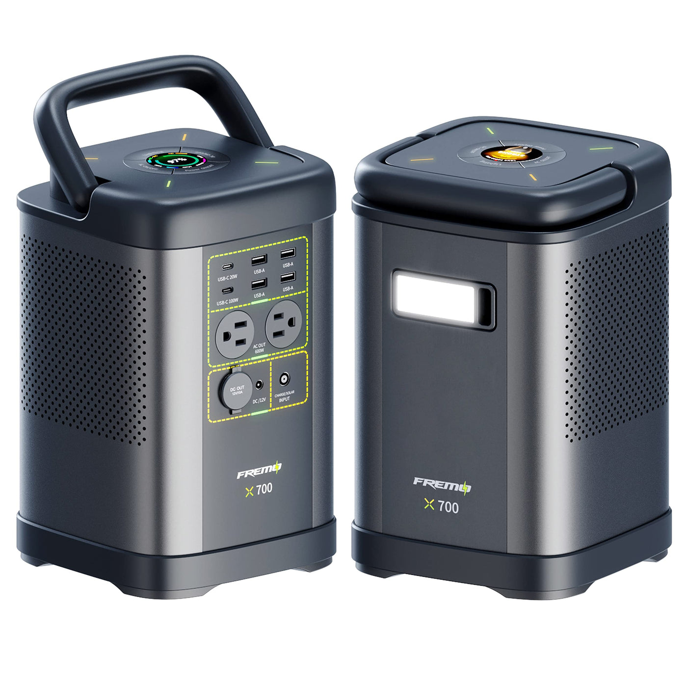 Q: What is the capacity of the FREMO Portable Power Station X700?A: The FREMO Portable Power Station X700 has a capacity of 662Wh, making it suitable for powering multiple devices for extended periods.
