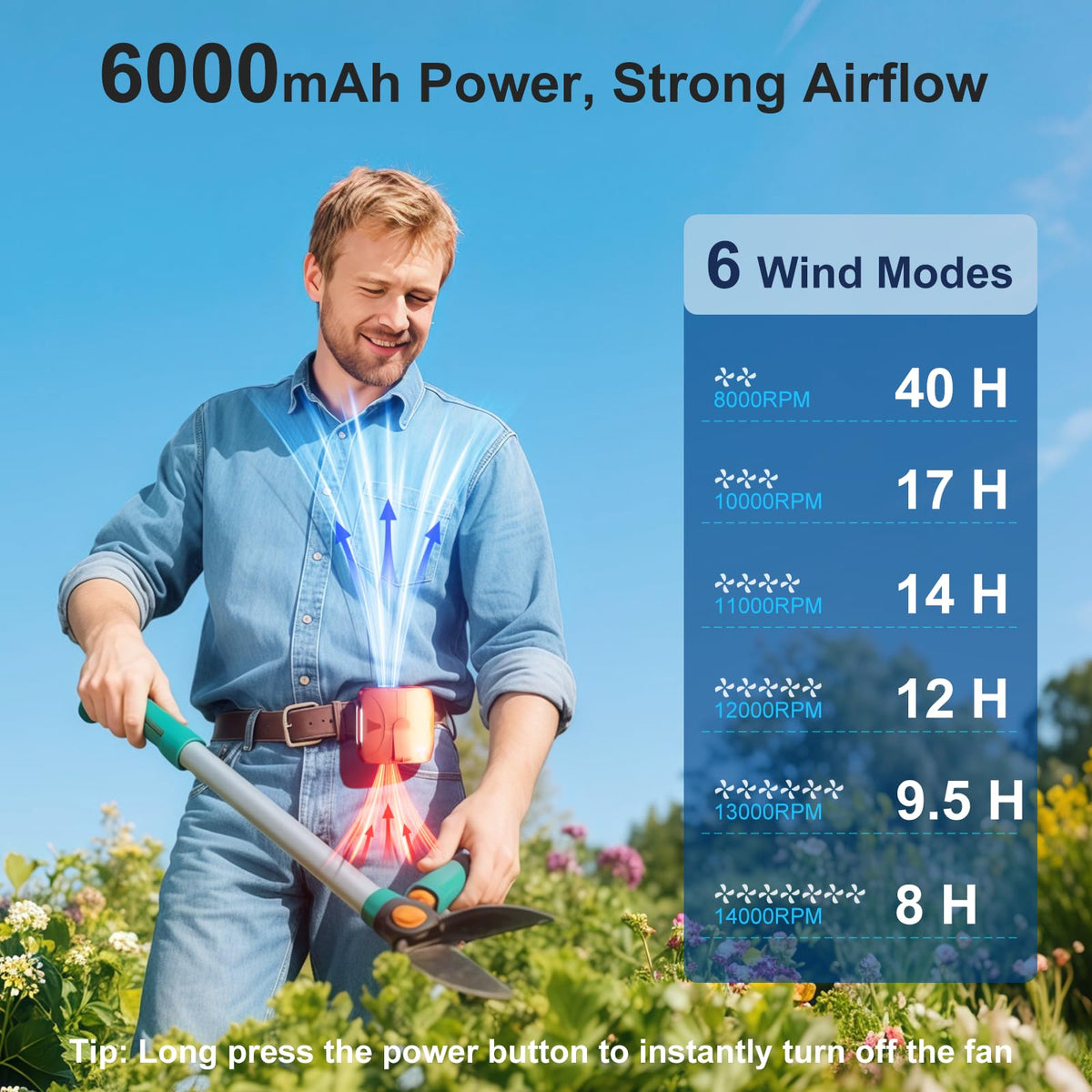 Fulsunt Orange Portable Fan For Travel, Waist Fan Clip On Up To 40H, 14000Rpm 6 Speeds Powerful Airflow, 6000Mah Rechargeable Sh